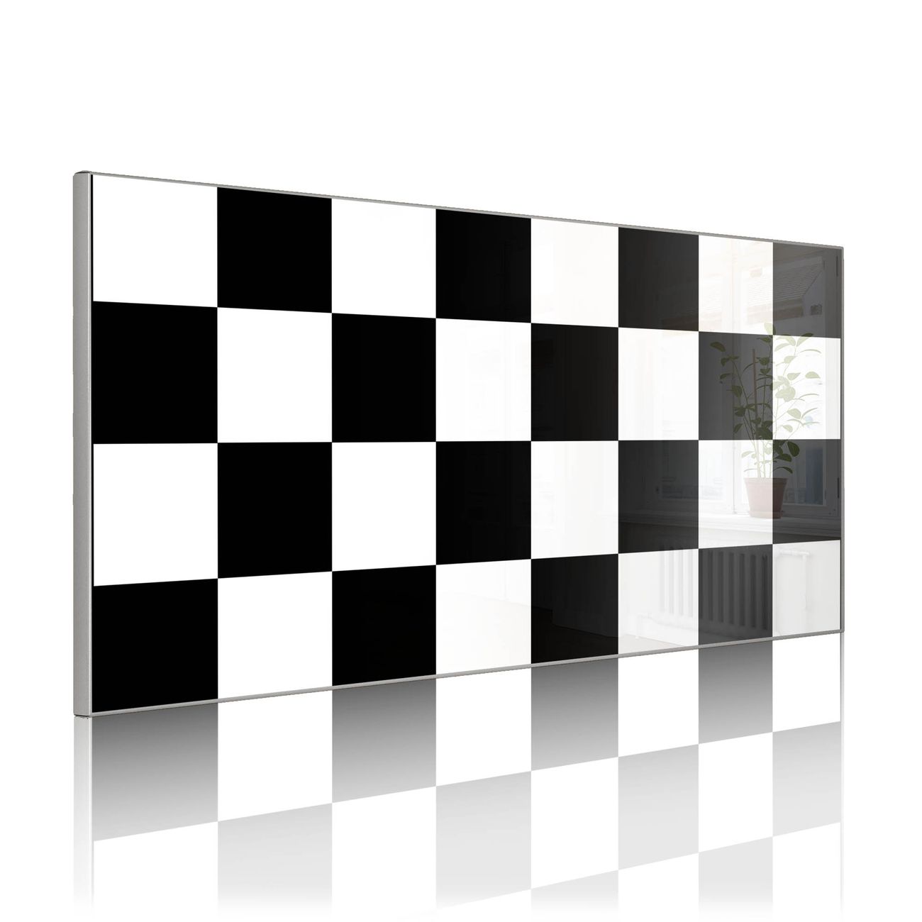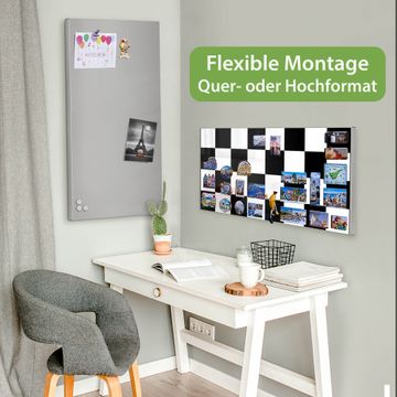 FUNKTION: Die banjado Magnettafel 78x37 cm im Design Motiv Schachbrettmuster vereint Funktionalität und modernes Wohndesign auf stilvolle Weise. Diese hochwertige Magnetwand aus Metall hilft Ihnen dabei, Notizen, Fotos, Termine, Einkaufslisten oder Rezepte übersichtlich zu organisieren. Als praktisches Memoboard sorgt sie für Struktur im Alltag und setzt gleichzeitig einen dekorativen Akzent an Ihrer Wand. DESIGN: Die Metalltafel besteht aus robustem, lackiertem Stahl und ist mit allen handelsüblichen Magneten nutzbar. Besonders praktisch ist die beschreibbare Oberfläche. Sie können die Magnettafel ganz einfach mit Kreidestiften beschriften und die Inhalte bei Bedarf mit einem feuchten Tuch wieder entfernen. So eignet sich das Memoboard ideal für Wochenpläne, Menüpläne, To Do Listen oder kreative Botschaften. DETAILS: Mit ihrem großzügigen Querformat von 78x37 cm bietet die Magnettafel ausreichend Platz für Ihre Organisation. Das Motiv Motiv Schachbrettmuster bringt eine warme, natürliche Optik in Küche, Flur, Büro oder Homeoffice und wirkt auch ohne Magnete oder Beschriftung wie ein modernes Wandbild. NUTZEN: Auf der Rückseite befinden sich vorgefertigte Löcher für eine schnelle und unkomplizierte Wandmontage. Jede banjado Magnettafel wird in Deutschland gefertigt und steht für Qualität, Langlebigkeit und liebevolle Verarbeitung. Dieses beschreibbare Memoboard ist die perfekte Kombination aus Metalltafel, Designobjekt und praktischer Magnetwand für Ihren Alltag. BANJADO: Wir sind ein kleines Team aus dem Herzen von Sachsen. Wir fertigen alle Artikel von Hand für Sie an, Sie erhalten keine preiswerte Importware. Auf Wunsch können Sie auch Ihr eigenes Foto auf die Magnettafel aufbringen, schreiben Sie uns an. Herzlichst, Ihr banjado-Team