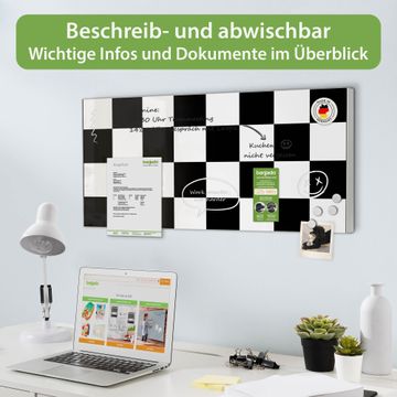 Metall Magnettafel beschreibbar 78x37cm Motiv Schachbrettmuster