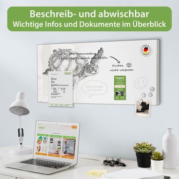FUNKTION: Die banjado Magnettafel 78x37 cm im Design Motiv Schildkröte 2 vereint Funktionalität und modernes Wohndesign auf stilvolle Weise. Diese hochwertige Magnetwand aus Metall hilft Ihnen dabei, Notizen, Fotos, Termine, Einkaufslisten oder Rezepte übersichtlich zu organisieren. Als praktisches Memoboard sorgt sie für Struktur im Alltag und setzt gleichzeitig einen dekorativen Akzent an Ihrer Wand. DESIGN: Die Metalltafel besteht aus robustem, lackiertem Stahl und ist mit allen handelsüblichen Magneten nutzbar. Besonders praktisch ist die beschreibbare Oberfläche. Sie können die Magnettafel ganz einfach mit Kreidestiften beschriften und die Inhalte bei Bedarf mit einem feuchten Tuch wieder entfernen. So eignet sich das Memoboard ideal für Wochenpläne, Menüpläne, To Do Listen oder kreative Botschaften. DETAILS: Mit ihrem großzügigen Querformat von 78x37 cm bietet die Magnettafel ausreichend Platz für Ihre Organisation. Das Motiv Motiv Schildkröte 2 bringt eine warme, natürliche Optik in Küche, Flur, Büro oder Homeoffice und wirkt auch ohne Magnete oder Beschriftung wie ein modernes Wandbild. NUTZEN: Auf der Rückseite befinden sich vorgefertigte Löcher für eine schnelle und unkomplizierte Wandmontage. Jede banjado Magnettafel wird in Deutschland gefertigt und steht für Qualität, Langlebigkeit und liebevolle Verarbeitung. Dieses beschreibbare Memoboard ist die perfekte Kombination aus Metalltafel, Designobjekt und praktischer Magnetwand für Ihren Alltag. BANJADO: Wir sind ein kleines Team aus dem Herzen von Sachsen. Wir fertigen alle Artikel von Hand für Sie an, Sie erhalten keine preiswerte Importware. Auf Wunsch können Sie auch Ihr eigenes Foto auf die Magnettafel aufbringen, schreiben Sie uns an. Herzlichst, Ihr banjado-Team