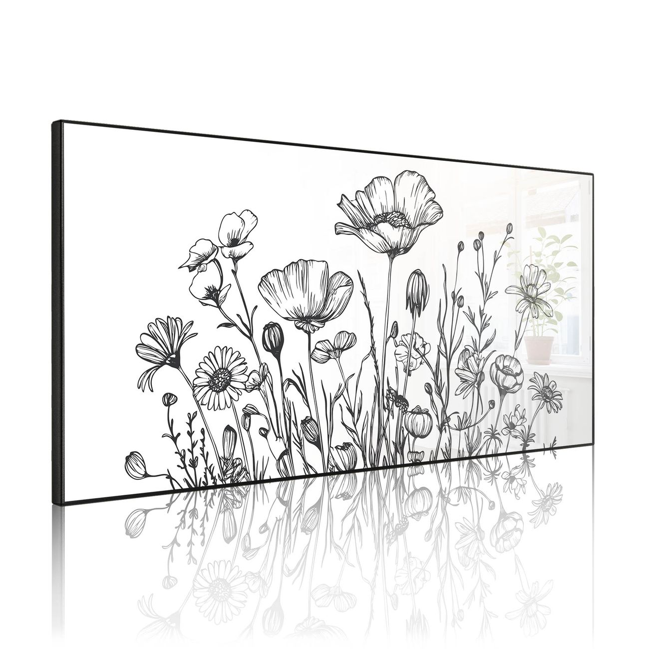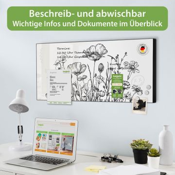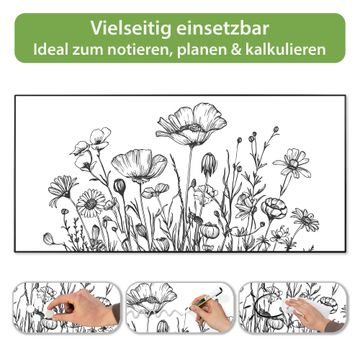 Metall Magnettafel beschreibbar 78x37cm Motiv Schwarz-Weiß Blumenzeichnung