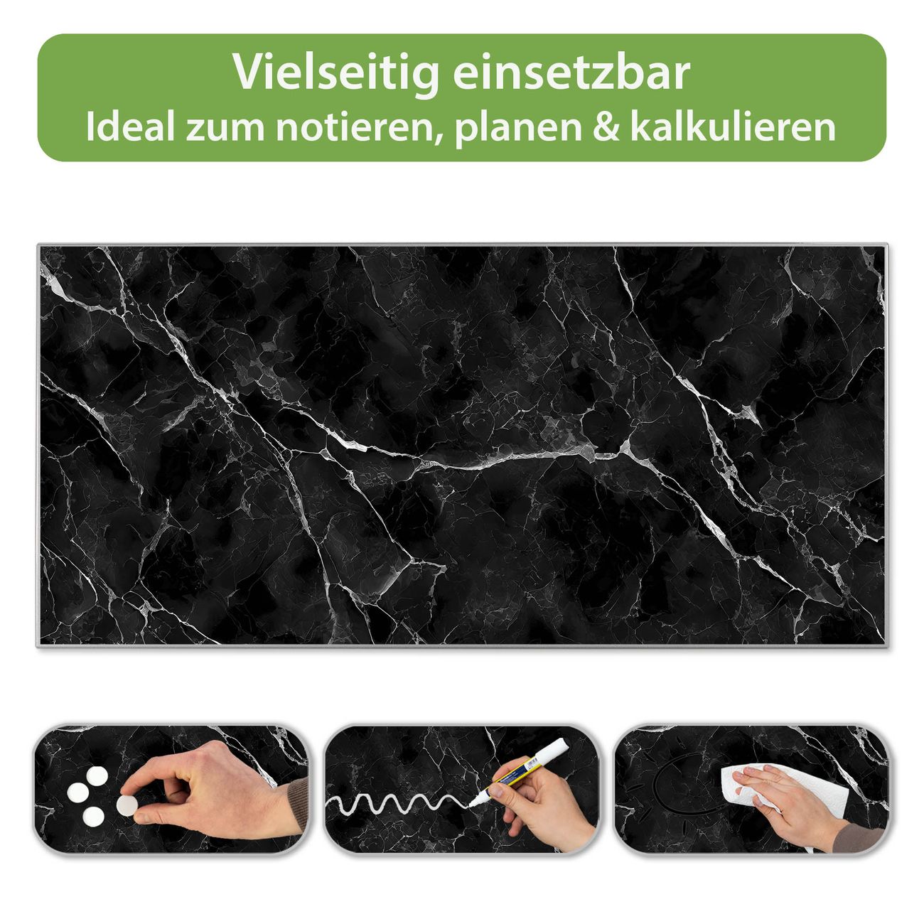 Metall Magnettafel beschreibbar 78x37cm Motiv Schwarzgrauer Marmor