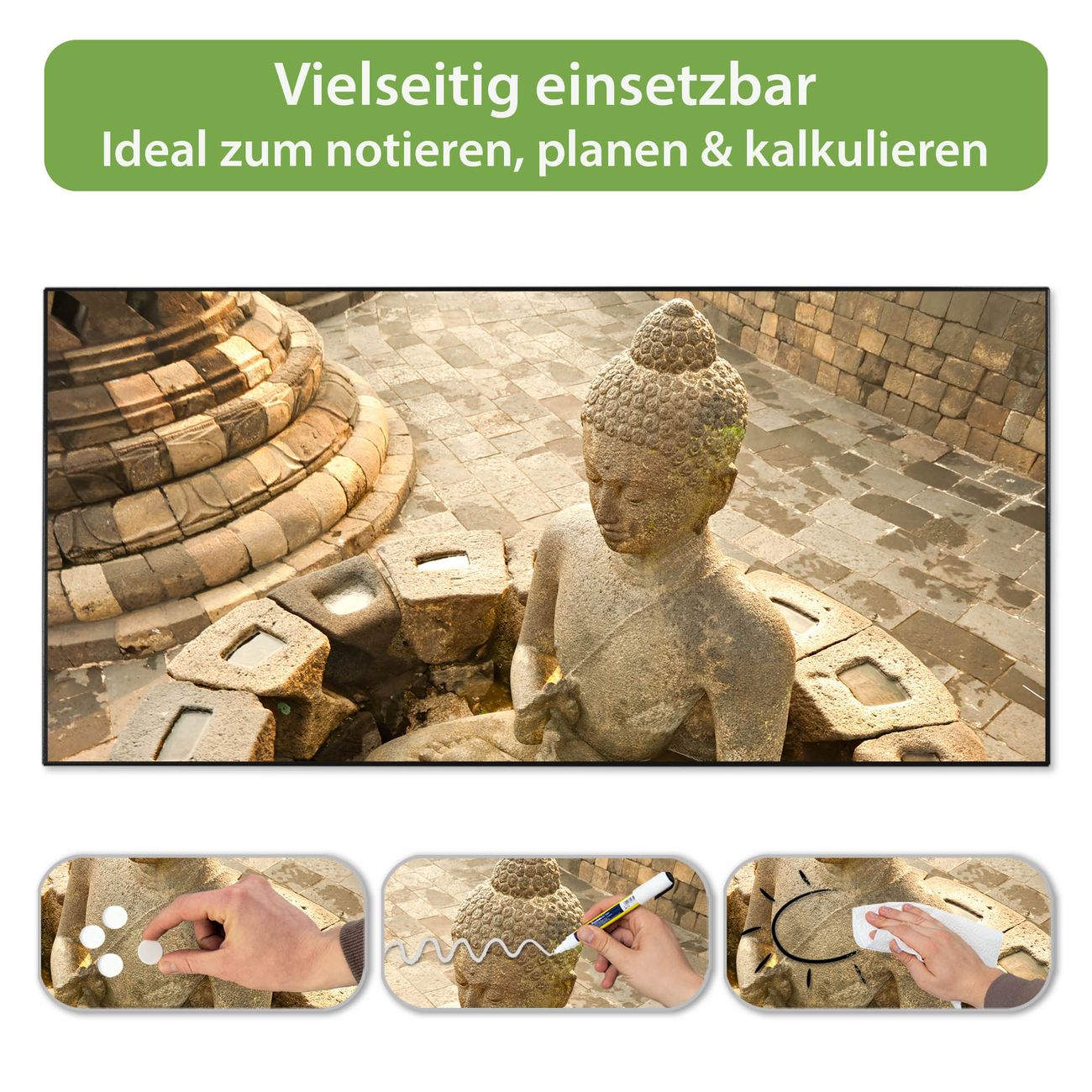 Metall Magnettafel beschreibbar 78x37cm Motiv Sitzender Buddha
