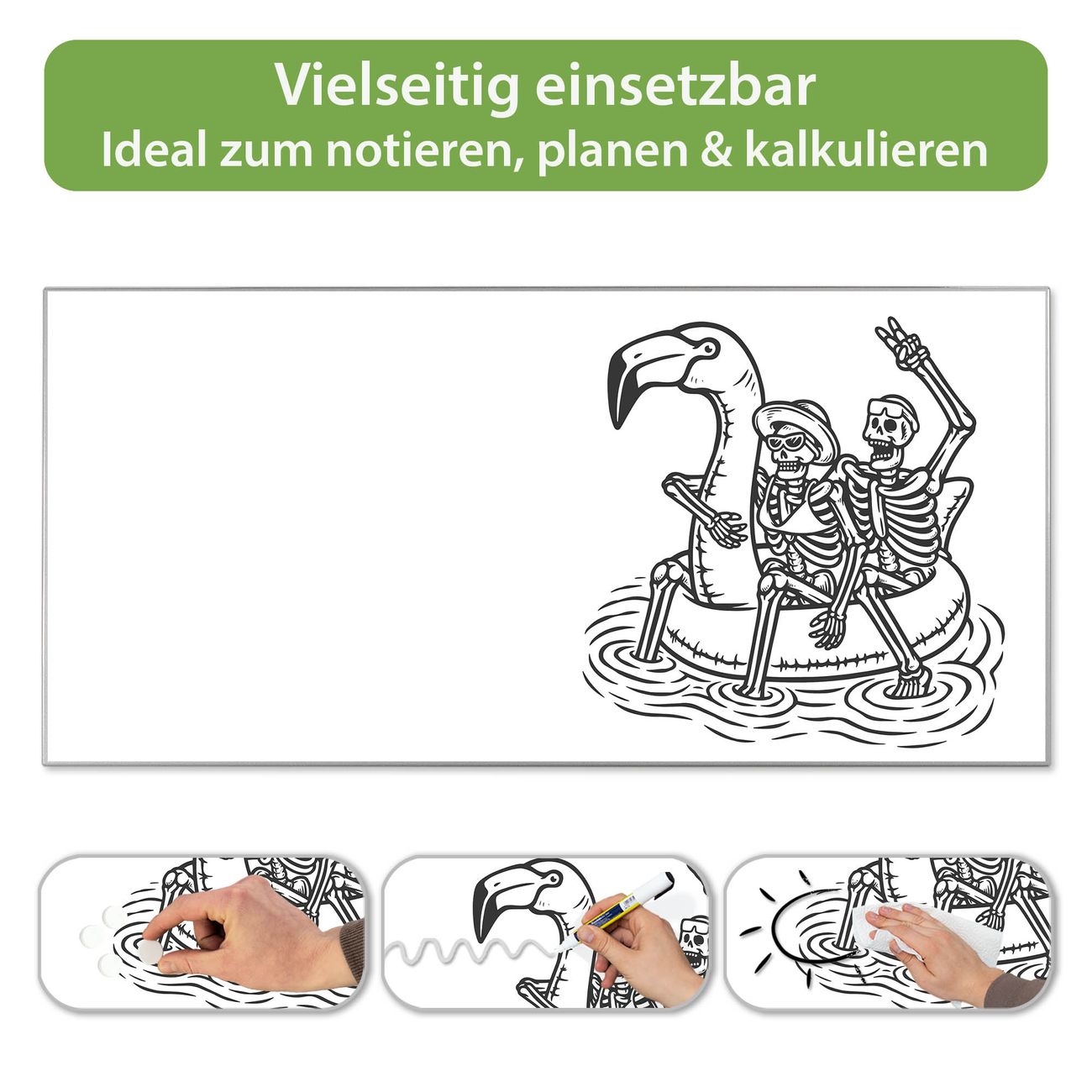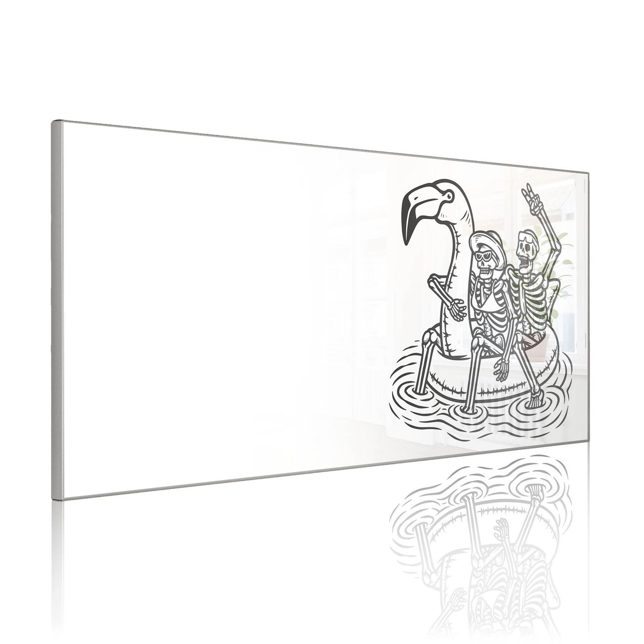 Metall Magnettafel beschreibbar 78x37cm Motiv Skelette mit Flamingoschwimmring 2
