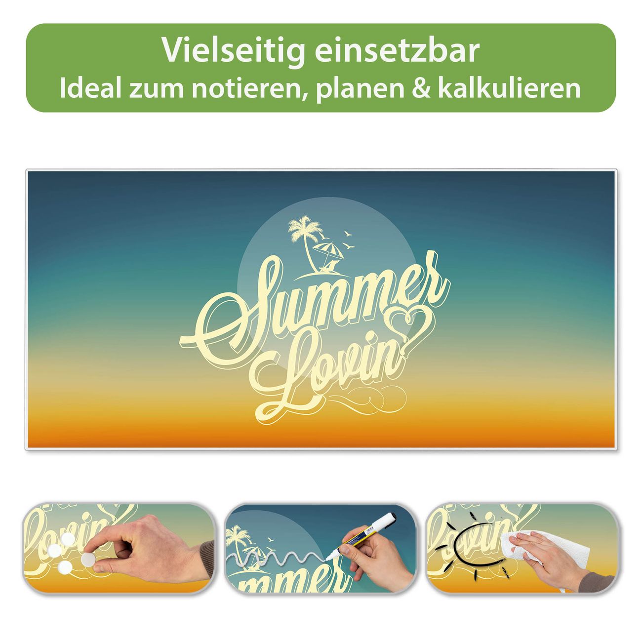 Metall Magnettafel beschreibbar 78x37cm Motiv Sommer Lovin