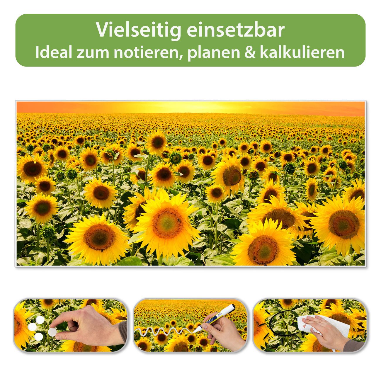 Metall Magnettafel beschreibbar 78x37cm Motiv Sonnenblumenmeer
