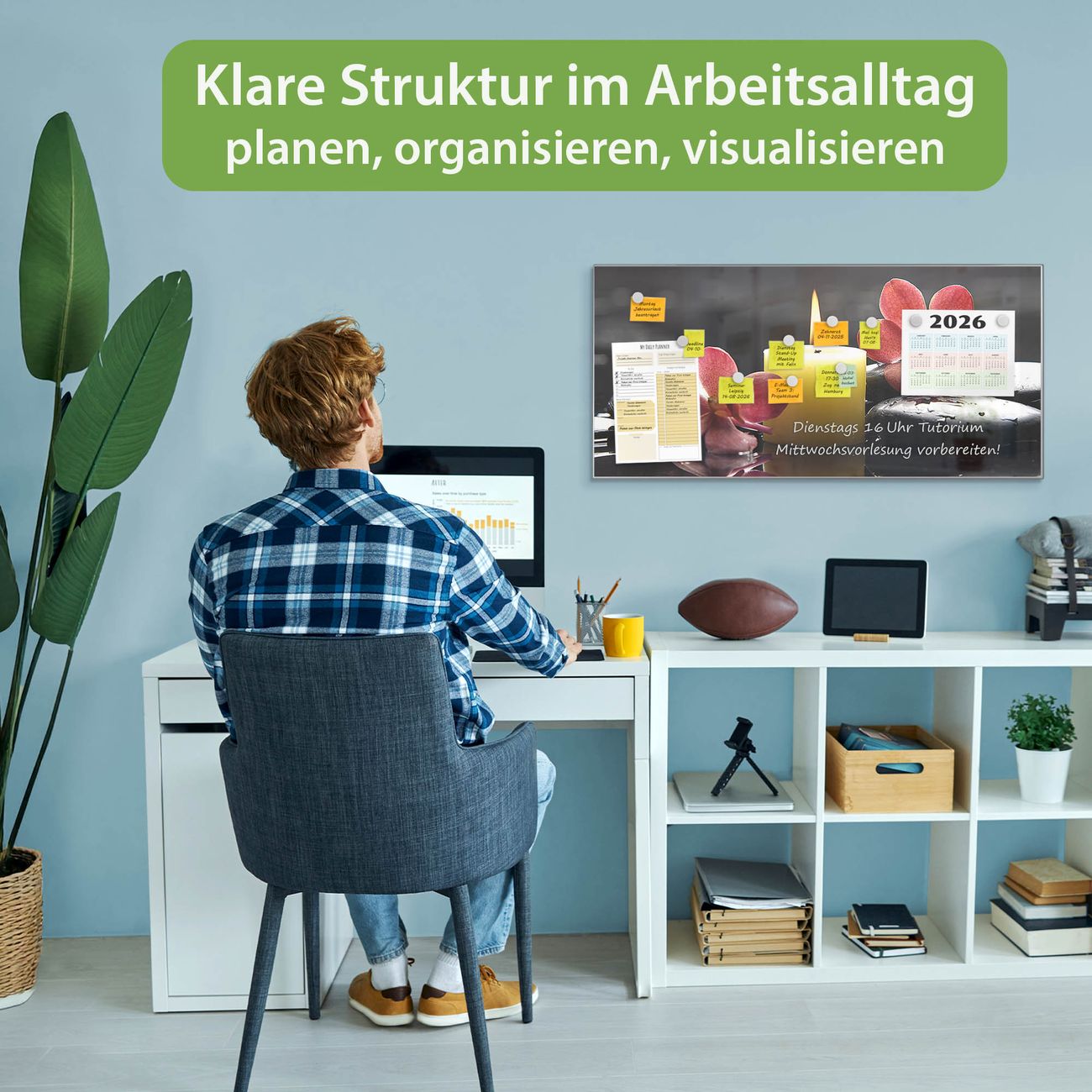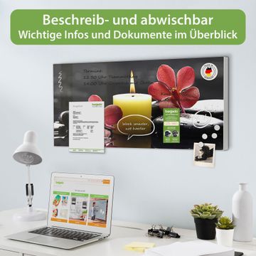 FUNKTION: Die banjado Magnettafel 78x37 cm im Design Motiv Steine & Relax 5 vereint Funktionalität und modernes Wohndesign auf stilvolle Weise. Diese hochwertige Magnetwand aus Metall hilft Ihnen dabei, Notizen, Fotos, Termine, Einkaufslisten oder Rezepte übersichtlich zu organisieren. Als praktisches Memoboard sorgt sie für Struktur im Alltag und setzt gleichzeitig einen dekorativen Akzent an Ihrer Wand. DESIGN: Die Metalltafel besteht aus robustem, lackiertem Stahl und ist mit allen handelsüblichen Magneten nutzbar. Besonders praktisch ist die beschreibbare Oberfläche. Sie können die Magnettafel ganz einfach mit Kreidestiften beschriften und die Inhalte bei Bedarf mit einem feuchten Tuch wieder entfernen. So eignet sich das Memoboard ideal für Wochenpläne, Menüpläne, To Do Listen oder kreative Botschaften. DETAILS: Mit ihrem großzügigen Querformat von 78x37 cm bietet die Magnettafel ausreichend Platz für Ihre Organisation. Das Motiv Motiv Steine & Relax 5 bringt eine warme, natürliche Optik in Küche, Flur, Büro oder Homeoffice und wirkt auch ohne Magnete oder Beschriftung wie ein modernes Wandbild. NUTZEN: Auf der Rückseite befinden sich vorgefertigte Löcher für eine schnelle und unkomplizierte Wandmontage. Jede banjado Magnettafel wird in Deutschland gefertigt und steht für Qualität, Langlebigkeit und liebevolle Verarbeitung. Dieses beschreibbare Memoboard ist die perfekte Kombination aus Metalltafel, Designobjekt und praktischer Magnetwand für Ihren Alltag. BANJADO: Wir sind ein kleines Team aus dem Herzen von Sachsen. Wir fertigen alle Artikel von Hand für Sie an, Sie erhalten keine preiswerte Importware. Auf Wunsch können Sie auch Ihr eigenes Foto auf die Magnettafel aufbringen, schreiben Sie uns an. Herzlichst, Ihr banjado-Team