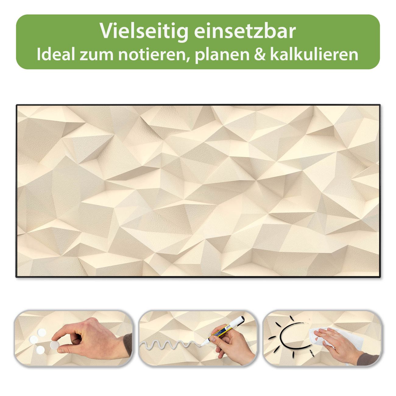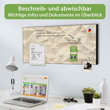 FUNKTION: Die banjado Magnettafel 78x37 cm im Design Motiv Steinwand 2 vereint Funktionalität und modernes Wohndesign auf stilvolle Weise. Diese hochwertige Magnetwand aus Metall hilft Ihnen dabei, Notizen, Fotos, Termine, Einkaufslisten oder Rezepte übersichtlich zu organisieren. Als praktisches Memoboard sorgt sie für Struktur im Alltag und setzt gleichzeitig einen dekorativen Akzent an Ihrer Wand. DESIGN: Die Metalltafel besteht aus robustem, lackiertem Stahl und ist mit allen handelsüblichen Magneten nutzbar. Besonders praktisch ist die beschreibbare Oberfläche. Sie können die Magnettafel ganz einfach mit Kreidestiften beschriften und die Inhalte bei Bedarf mit einem feuchten Tuch wieder entfernen. So eignet sich das Memoboard ideal für Wochenpläne, Menüpläne, To Do Listen oder kreative Botschaften. DETAILS: Mit ihrem großzügigen Querformat von 78x37 cm bietet die Magnettafel ausreichend Platz für Ihre Organisation. Das Motiv Motiv Steinwand 2 bringt eine warme, natürliche Optik in Küche, Flur, Büro oder Homeoffice und wirkt auch ohne Magnete oder Beschriftung wie ein modernes Wandbild. NUTZEN: Auf der Rückseite befinden sich vorgefertigte Löcher für eine schnelle und unkomplizierte Wandmontage. Jede banjado Magnettafel wird in Deutschland gefertigt und steht für Qualität, Langlebigkeit und liebevolle Verarbeitung. Dieses beschreibbare Memoboard ist die perfekte Kombination aus Metalltafel, Designobjekt und praktischer Magnetwand für Ihren Alltag. BANJADO: Wir sind ein kleines Team aus dem Herzen von Sachsen. Wir fertigen alle Artikel von Hand für Sie an, Sie erhalten keine preiswerte Importware. Auf Wunsch können Sie auch Ihr eigenes Foto auf die Magnettafel aufbringen, schreiben Sie uns an. Herzlichst, Ihr banjado-Team