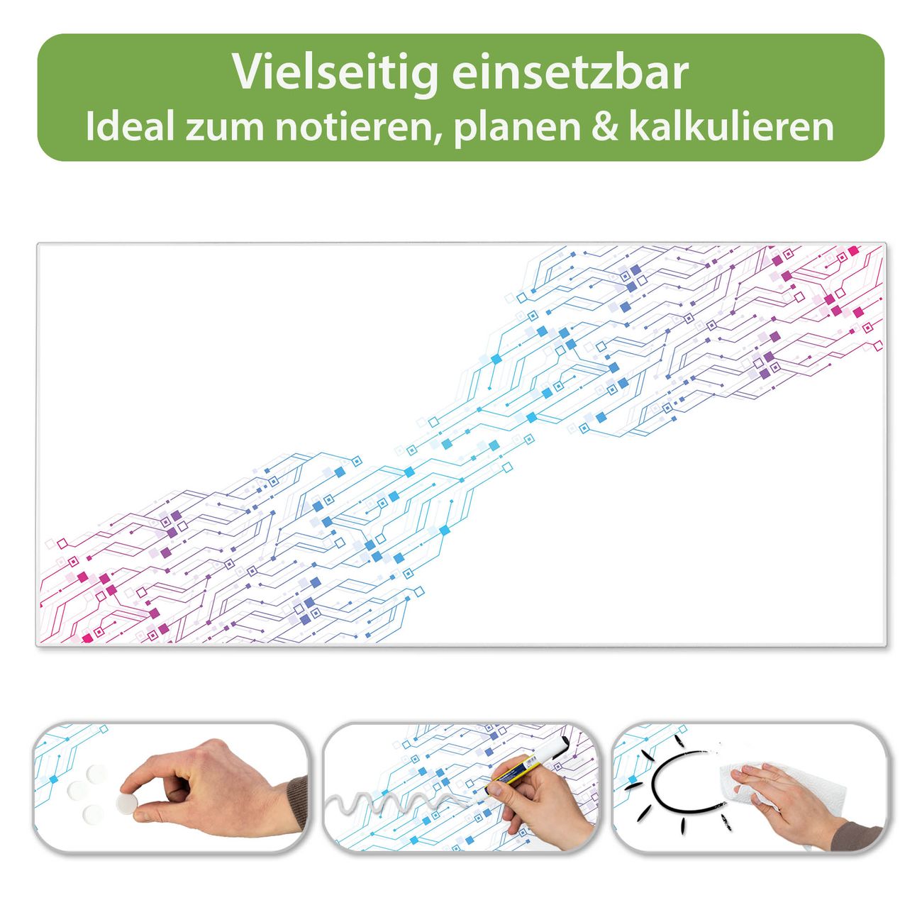 Metall Magnettafel beschreibbar 78x37cm Motiv Technologiemuster