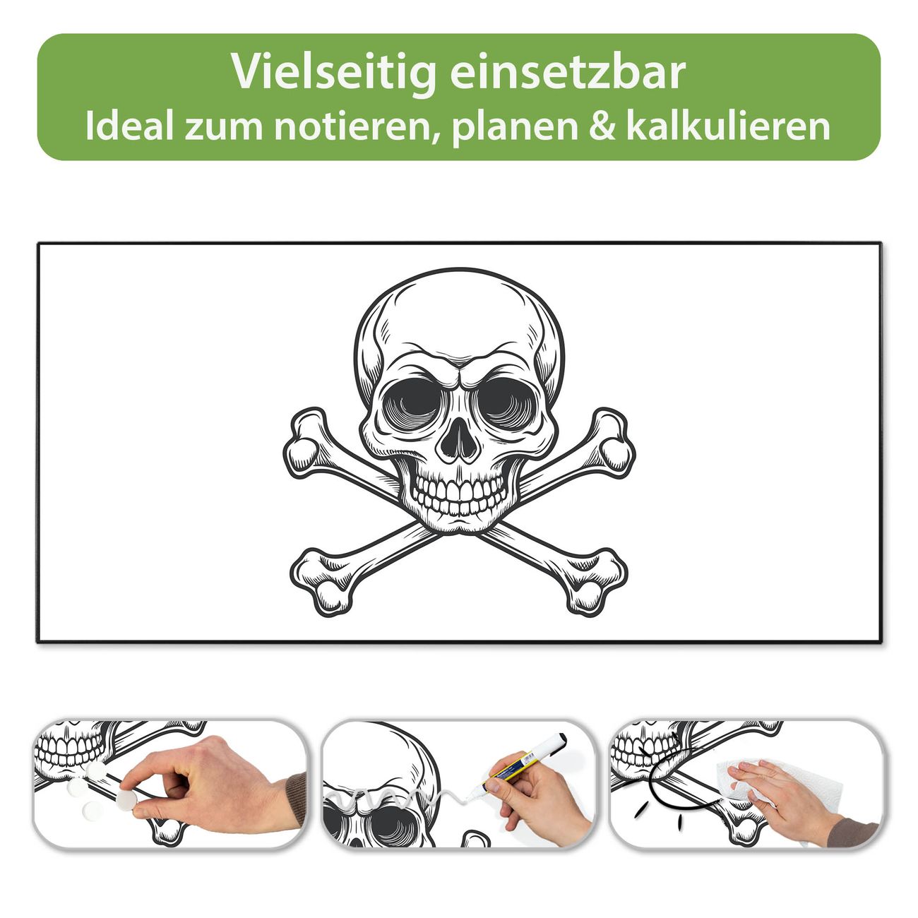 Metall Magnettafel beschreibbar 78x37cm Motiv Totenkopfsymbol