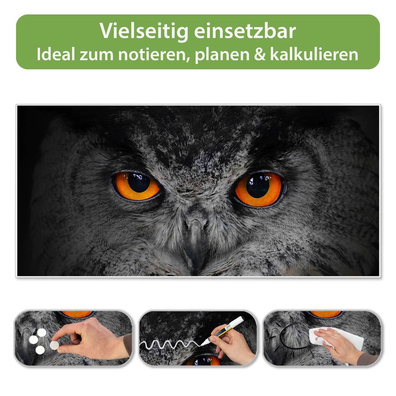 Metall Magnettafel beschreibbar 78x37cm Motiv Uhu