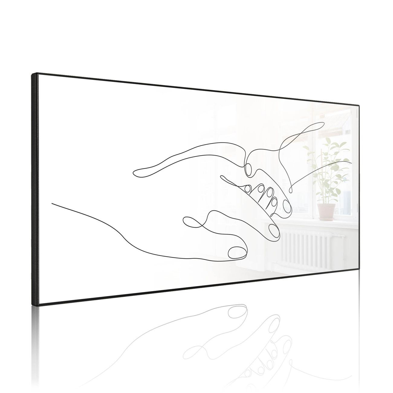 FUNKTION: Die banjado Magnettafel 78x37 cm im Design Motiv Verbindung der Hände Lineart 2 vereint Funktionalität und modernes Wohndesign auf stilvolle Weise. Diese hochwertige Magnetwand aus Metall hilft Ihnen dabei, Notizen, Fotos, Termine, Einkaufslisten oder Rezepte übersichtlich zu organisieren. Als praktisches Memoboard sorgt sie für Struktur im Alltag und setzt gleichzeitig einen dekorativen Akzent an Ihrer Wand. DESIGN: Die Metalltafel besteht aus robustem, lackiertem Stahl und ist mit allen handelsüblichen Magneten nutzbar. Besonders praktisch ist die beschreibbare Oberfläche. Sie können die Magnettafel ganz einfach mit Kreidestiften beschriften und die Inhalte bei Bedarf mit einem feuchten Tuch wieder entfernen. So eignet sich das Memoboard ideal für Wochenpläne, Menüpläne, To Do Listen oder kreative Botschaften. DETAILS: Mit ihrem großzügigen Querformat von 78x37 cm bietet die Magnettafel ausreichend Platz für Ihre Organisation. Das Motiv Motiv Verbindung der Hände Lineart 2 bringt eine warme, natürliche Optik in Küche, Flur, Büro oder Homeoffice und wirkt auch ohne Magnete oder Beschriftung wie ein modernes Wandbild. NUTZEN: Auf der Rückseite befinden sich vorgefertigte Löcher für eine schnelle und unkomplizierte Wandmontage. Jede banjado Magnettafel wird in Deutschland gefertigt und steht für Qualität, Langlebigkeit und liebevolle Verarbeitung. Dieses beschreibbare Memoboard ist die perfekte Kombination aus Metalltafel, Designobjekt und praktischer Magnetwand für Ihren Alltag. BANJADO: Wir sind ein kleines Team aus dem Herzen von Sachsen. Wir fertigen alle Artikel von Hand für Sie an, Sie erhalten keine preiswerte Importware. Auf Wunsch können Sie auch Ihr eigenes Foto auf die Magnettafel aufbringen, schreiben Sie uns an. Herzlichst, Ihr banjado-Team