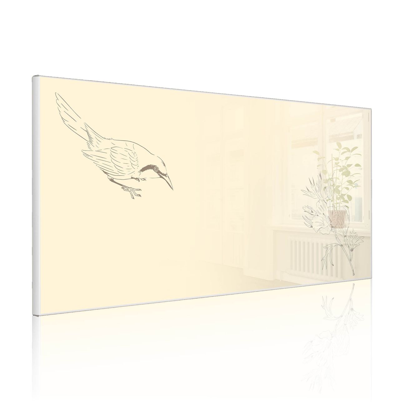 Metall Magnettafel beschreibbar 78x37cm Motiv Vogel und Blüte