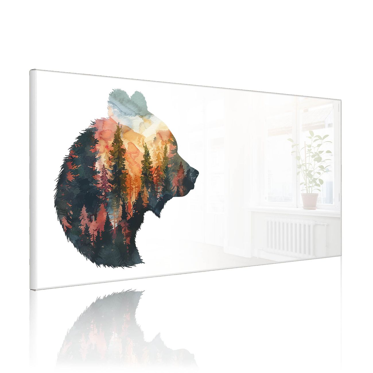 Metall Magnettafel beschreibbar 78x37cm Motiv Wald und Bär Silhouette