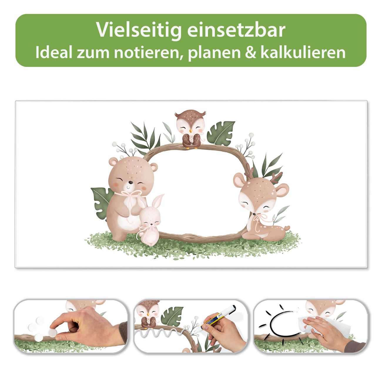 Metall Magnettafel beschreibbar 78x37cm Motiv Waldtier Freunde 3