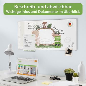 FUNKTION: Die banjado Magnettafel 78x37 cm im Design Motiv Waldtier Freunde 3 vereint Funktionalität und modernes Wohndesign auf stilvolle Weise. Diese hochwertige Magnetwand aus Metall hilft Ihnen dabei, Notizen, Fotos, Termine, Einkaufslisten oder Rezepte übersichtlich zu organisieren. Als praktisches Memoboard sorgt sie für Struktur im Alltag und setzt gleichzeitig einen dekorativen Akzent an Ihrer Wand. DESIGN: Die Metalltafel besteht aus robustem, lackiertem Stahl und ist mit allen handelsüblichen Magneten nutzbar. Besonders praktisch ist die beschreibbare Oberfläche. Sie können die Magnettafel ganz einfach mit Kreidestiften beschriften und die Inhalte bei Bedarf mit einem feuchten Tuch wieder entfernen. So eignet sich das Memoboard ideal für Wochenpläne, Menüpläne, To Do Listen oder kreative Botschaften. DETAILS: Mit ihrem großzügigen Querformat von 78x37 cm bietet die Magnettafel ausreichend Platz für Ihre Organisation. Das Motiv Motiv Waldtier Freunde 3 bringt eine warme, natürliche Optik in Küche, Flur, Büro oder Homeoffice und wirkt auch ohne Magnete oder Beschriftung wie ein modernes Wandbild. NUTZEN: Auf der Rückseite befinden sich vorgefertigte Löcher für eine schnelle und unkomplizierte Wandmontage. Jede banjado Magnettafel wird in Deutschland gefertigt und steht für Qualität, Langlebigkeit und liebevolle Verarbeitung. Dieses beschreibbare Memoboard ist die perfekte Kombination aus Metalltafel, Designobjekt und praktischer Magnetwand für Ihren Alltag. BANJADO: Wir sind ein kleines Team aus dem Herzen von Sachsen. Wir fertigen alle Artikel von Hand für Sie an, Sie erhalten keine preiswerte Importware. Auf Wunsch können Sie auch Ihr eigenes Foto auf die Magnettafel aufbringen, schreiben Sie uns an. Herzlichst, Ihr banjado-Team