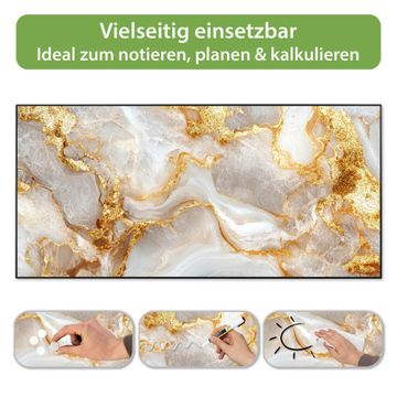 Metall Magnettafel beschreibbar 78x37cm Motiv Weißer Marmor mit Gold 1