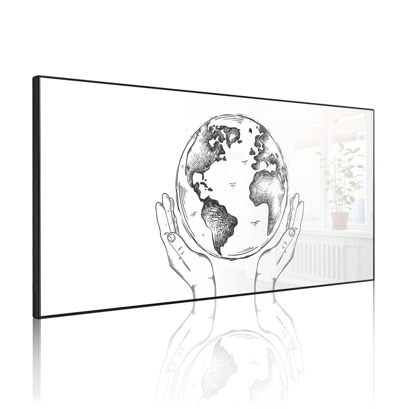 Metall Magnettafel beschreibbar 78x37cm Motiv Welt in den Händen