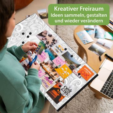 FUNKTION: Die banjado Magnettafel 78x37 cm im Design Motiv White Swirl vereint Funktionalität und modernes Wohndesign auf stilvolle Weise. Diese hochwertige Magnetwand aus Metall hilft Ihnen dabei, Notizen, Fotos, Termine, Einkaufslisten oder Rezepte übersichtlich zu organisieren. Als praktisches Memoboard sorgt sie für Struktur im Alltag und setzt gleichzeitig einen dekorativen Akzent an Ihrer Wand. DESIGN: Die Metalltafel besteht aus robustem, lackiertem Stahl und ist mit allen handelsüblichen Magneten nutzbar. Besonders praktisch ist die beschreibbare Oberfläche. Sie können die Magnettafel ganz einfach mit Kreidestiften beschriften und die Inhalte bei Bedarf mit einem feuchten Tuch wieder entfernen. So eignet sich das Memoboard ideal für Wochenpläne, Menüpläne, To Do Listen oder kreative Botschaften. DETAILS: Mit ihrem großzügigen Querformat von 78x37 cm bietet die Magnettafel ausreichend Platz für Ihre Organisation. Das Motiv Motiv White Swirl bringt eine warme, natürliche Optik in Küche, Flur, Büro oder Homeoffice und wirkt auch ohne Magnete oder Beschriftung wie ein modernes Wandbild. NUTZEN: Auf der Rückseite befinden sich vorgefertigte Löcher für eine schnelle und unkomplizierte Wandmontage. Jede banjado Magnettafel wird in Deutschland gefertigt und steht für Qualität, Langlebigkeit und liebevolle Verarbeitung. Dieses beschreibbare Memoboard ist die perfekte Kombination aus Metalltafel, Designobjekt und praktischer Magnetwand für Ihren Alltag. BANJADO: Wir sind ein kleines Team aus dem Herzen von Sachsen. Wir fertigen alle Artikel von Hand für Sie an, Sie erhalten keine preiswerte Importware. Auf Wunsch können Sie auch Ihr eigenes Foto auf die Magnettafel aufbringen, schreiben Sie uns an. Herzlichst, Ihr banjado-Team
