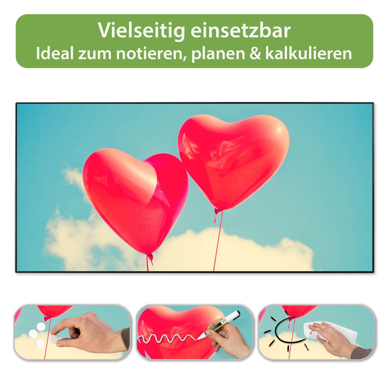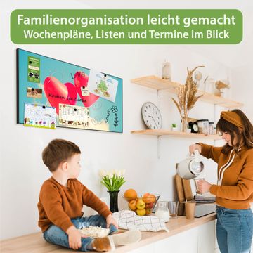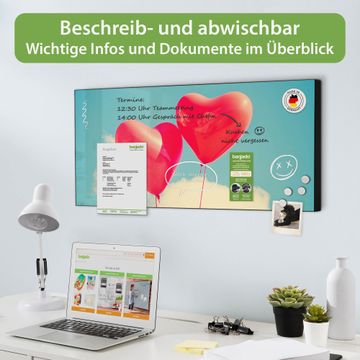 FUNKTION: Die banjado Magnettafel 78x37 cm im Design Motiv Wolke Sieben vereint Funktionalität und modernes Wohndesign auf stilvolle Weise. Diese hochwertige Magnetwand aus Metall hilft Ihnen dabei, Notizen, Fotos, Termine, Einkaufslisten oder Rezepte übersichtlich zu organisieren. Als praktisches Memoboard sorgt sie für Struktur im Alltag und setzt gleichzeitig einen dekorativen Akzent an Ihrer Wand. DESIGN: Die Metalltafel besteht aus robustem, lackiertem Stahl und ist mit allen handelsüblichen Magneten nutzbar. Besonders praktisch ist die beschreibbare Oberfläche. Sie können die Magnettafel ganz einfach mit Kreidestiften beschriften und die Inhalte bei Bedarf mit einem feuchten Tuch wieder entfernen. So eignet sich das Memoboard ideal für Wochenpläne, Menüpläne, To Do Listen oder kreative Botschaften. DETAILS: Mit ihrem großzügigen Querformat von 78x37 cm bietet die Magnettafel ausreichend Platz für Ihre Organisation. Das Motiv Motiv Wolke Sieben bringt eine warme, natürliche Optik in Küche, Flur, Büro oder Homeoffice und wirkt auch ohne Magnete oder Beschriftung wie ein modernes Wandbild. NUTZEN: Auf der Rückseite befinden sich vorgefertigte Löcher für eine schnelle und unkomplizierte Wandmontage. Jede banjado Magnettafel wird in Deutschland gefertigt und steht für Qualität, Langlebigkeit und liebevolle Verarbeitung. Dieses beschreibbare Memoboard ist die perfekte Kombination aus Metalltafel, Designobjekt und praktischer Magnetwand für Ihren Alltag. BANJADO: Wir sind ein kleines Team aus dem Herzen von Sachsen. Wir fertigen alle Artikel von Hand für Sie an, Sie erhalten keine preiswerte Importware. Auf Wunsch können Sie auch Ihr eigenes Foto auf die Magnettafel aufbringen, schreiben Sie uns an. Herzlichst, Ihr banjado-Team