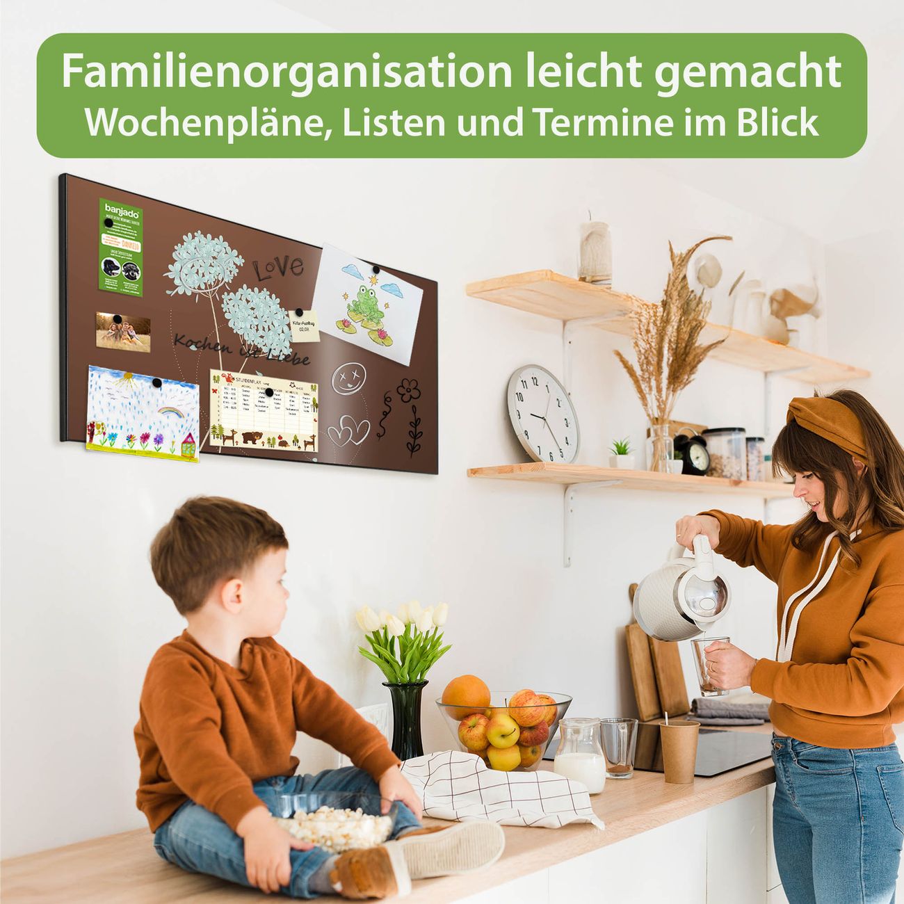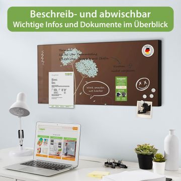 FUNKTION: Die banjado Magnettafel 78x37 cm im Design Motiv WT Blaue Hortensie vereint Funktionalität und modernes Wohndesign auf stilvolle Weise. Diese hochwertige Magnetwand aus Metall hilft Ihnen dabei, Notizen, Fotos, Termine, Einkaufslisten oder Rezepte übersichtlich zu organisieren. Als praktisches Memoboard sorgt sie für Struktur im Alltag und setzt gleichzeitig einen dekorativen Akzent an Ihrer Wand. DESIGN: Die Metalltafel besteht aus robustem, lackiertem Stahl und ist mit allen handelsüblichen Magneten nutzbar. Besonders praktisch ist die beschreibbare Oberfläche. Sie können die Magnettafel ganz einfach mit Kreidestiften beschriften und die Inhalte bei Bedarf mit einem feuchten Tuch wieder entfernen. So eignet sich das Memoboard ideal für Wochenpläne, Menüpläne, To Do Listen oder kreative Botschaften. DETAILS: Mit ihrem großzügigen Querformat von 78x37 cm bietet die Magnettafel ausreichend Platz für Ihre Organisation. Das Motiv Motiv WT Blaue Hortensie bringt eine warme, natürliche Optik in Küche, Flur, Büro oder Homeoffice und wirkt auch ohne Magnete oder Beschriftung wie ein modernes Wandbild. NUTZEN: Auf der Rückseite befinden sich vorgefertigte Löcher für eine schnelle und unkomplizierte Wandmontage. Jede banjado Magnettafel wird in Deutschland gefertigt und steht für Qualität, Langlebigkeit und liebevolle Verarbeitung. Dieses beschreibbare Memoboard ist die perfekte Kombination aus Metalltafel, Designobjekt und praktischer Magnetwand für Ihren Alltag. BANJADO: Wir sind ein kleines Team aus dem Herzen von Sachsen. Wir fertigen alle Artikel von Hand für Sie an, Sie erhalten keine preiswerte Importware. Auf Wunsch können Sie auch Ihr eigenes Foto auf die Magnettafel aufbringen, schreiben Sie uns an. Herzlichst, Ihr banjado-Team