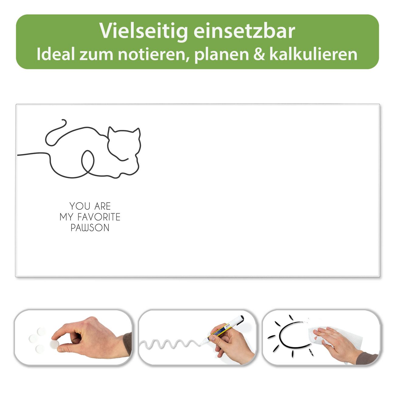 FUNKTION: Die banjado Magnettafel 78x37 cm im Design Motiv You are my favourite Pawson vereint Funktionalität und modernes Wohndesign auf stilvolle Weise. Diese hochwertige Magnetwand aus Metall hilft Ihnen dabei, Notizen, Fotos, Termine, Einkaufslisten oder Rezepte übersichtlich zu organisieren. Als praktisches Memoboard sorgt sie für Struktur im Alltag und setzt gleichzeitig einen dekorativen Akzent an Ihrer Wand. DESIGN: Die Metalltafel besteht aus robustem, lackiertem Stahl und ist mit allen handelsüblichen Magneten nutzbar. Besonders praktisch ist die beschreibbare Oberfläche. Sie können die Magnettafel ganz einfach mit Kreidestiften beschriften und die Inhalte bei Bedarf mit einem feuchten Tuch wieder entfernen. So eignet sich das Memoboard ideal für Wochenpläne, Menüpläne, To Do Listen oder kreative Botschaften. DETAILS: Mit ihrem großzügigen Querformat von 78x37 cm bietet die Magnettafel ausreichend Platz für Ihre Organisation. Das Motiv Motiv You are my favourite Pawson bringt eine warme, natürliche Optik in Küche, Flur, Büro oder Homeoffice und wirkt auch ohne Magnete oder Beschriftung wie ein modernes Wandbild. NUTZEN: Auf der Rückseite befinden sich vorgefertigte Löcher für eine schnelle und unkomplizierte Wandmontage. Jede banjado Magnettafel wird in Deutschland gefertigt und steht für Qualität, Langlebigkeit und liebevolle Verarbeitung. Dieses beschreibbare Memoboard ist die perfekte Kombination aus Metalltafel, Designobjekt und praktischer Magnetwand für Ihren Alltag. BANJADO: Wir sind ein kleines Team aus dem Herzen von Sachsen. Wir fertigen alle Artikel von Hand für Sie an, Sie erhalten keine preiswerte Importware. Auf Wunsch können Sie auch Ihr eigenes Foto auf die Magnettafel aufbringen, schreiben Sie uns an. Herzlichst, Ihr banjado-Team