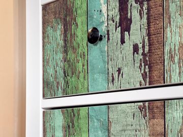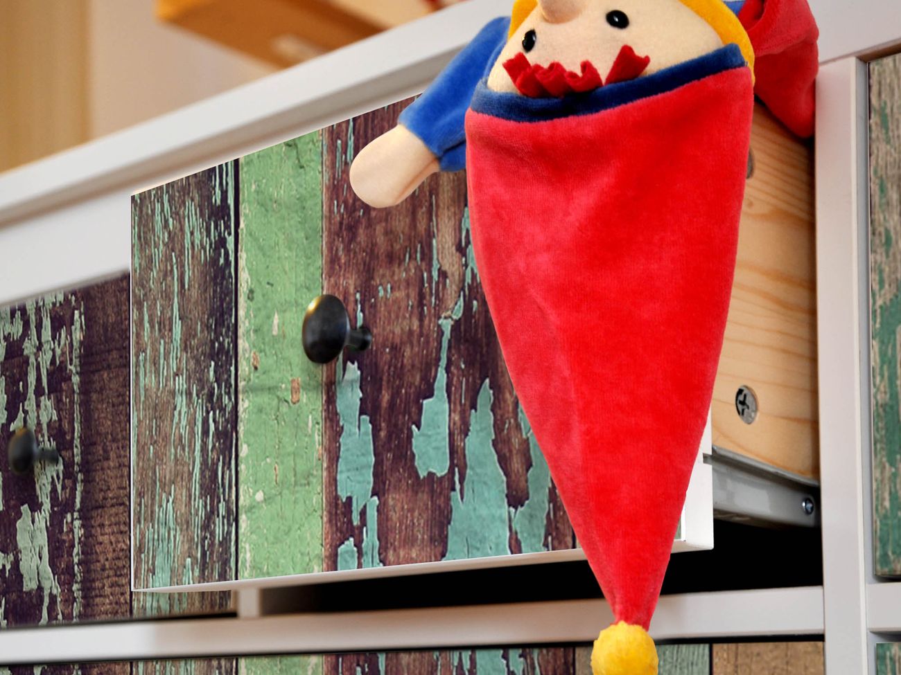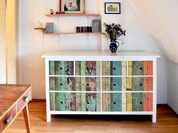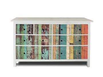 Möbelsticker für Ikea HEMNES Motiv Bunte Bretterwand