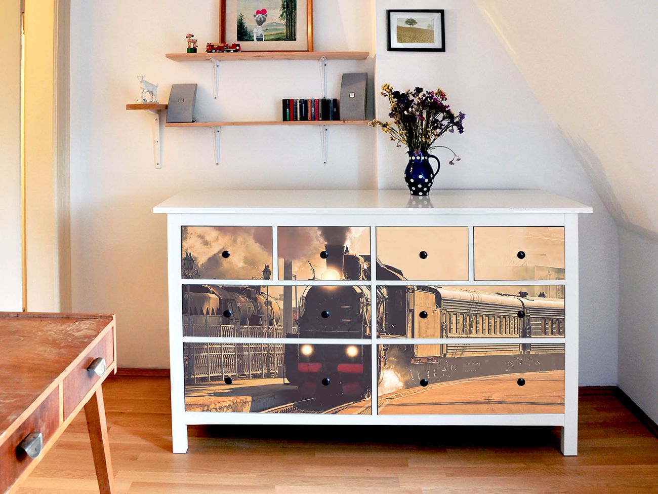 Möbelsticker für Ikea HEMNES Motiv Einfahrender Zug