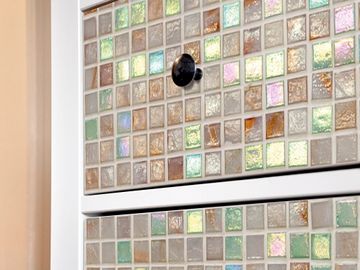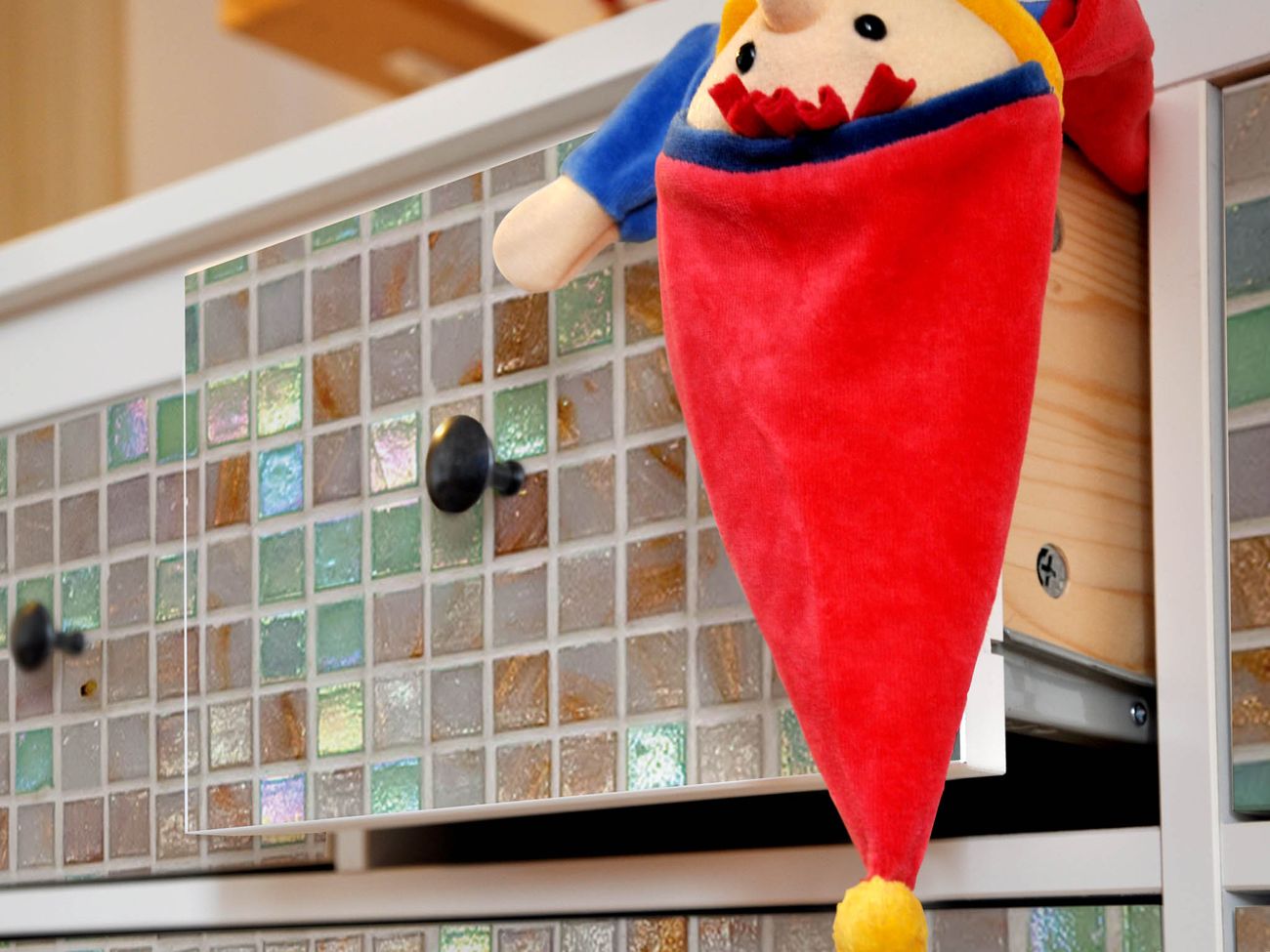 FUNKTION: Die banjado Möbelfolie mit Motiv Grüne Fliesen zaubert im Handumdrehen aus Ihrer Ikea HEMNES Kommode ein individuell gestaltetes Unikat. Verziert mit einem traumhaften Motiv verbindet die HEMNES Kommode jede Menge Stauraum mit ansprechendem Design. Die gezeigte IKEA HEMNES Komode ist nicht im Angebot enthalten. DESIGN: Die banjado Klebefolie gestaltet Ihr Ikea Möbelstück völlig neu. So passt sich die HEMNESKommode verschiedenen Einrichtungsstilen an. Lassen Sie Ihrer Kreativität freien Raum, wir helfen Ihnen bei der Umsetzung. DETAILS: Der banjado Grüne Fliesen Möbelsticker ist selbstklebend und wird Ihnen bereits fertig zugeschnitten geliefert. Sie können Schritt für Schritt jede Schublade einzeln bekleben, eine detaillierte Verklebeanleitung liegt selbstverständlich bei. Die Folie ist mit einem zusätzlichen Laminat überzogen, dass Ihr Möbelstück zusätzlich vor Kratzern schützt. NUTZEN: Sie können die banjado Möbelfolie wunderbar nutzen, um abgeplatzte, schmutzige oder unschöne Stellen an Ihrer Malm Kommode zu überdecken. Mit einem wechselnden Design können Sie Ihren Einrichtungsstil ändern oder aus einer Kinderkommode eine Flurkommode gestalten. Alle verwendeten Farben sind lösungsmittelfrei. BANJADO: Ihre Design Folie wird in Sachsen in einer kleinen Manufaktur angefertigt und verpackt. Wir legen großen Wert auf die Verbindung von Funktionalität und Design.