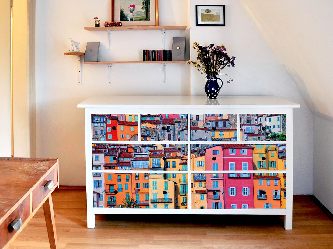 Möbelsticker für Ikea HEMNES Motiv Häuserberg