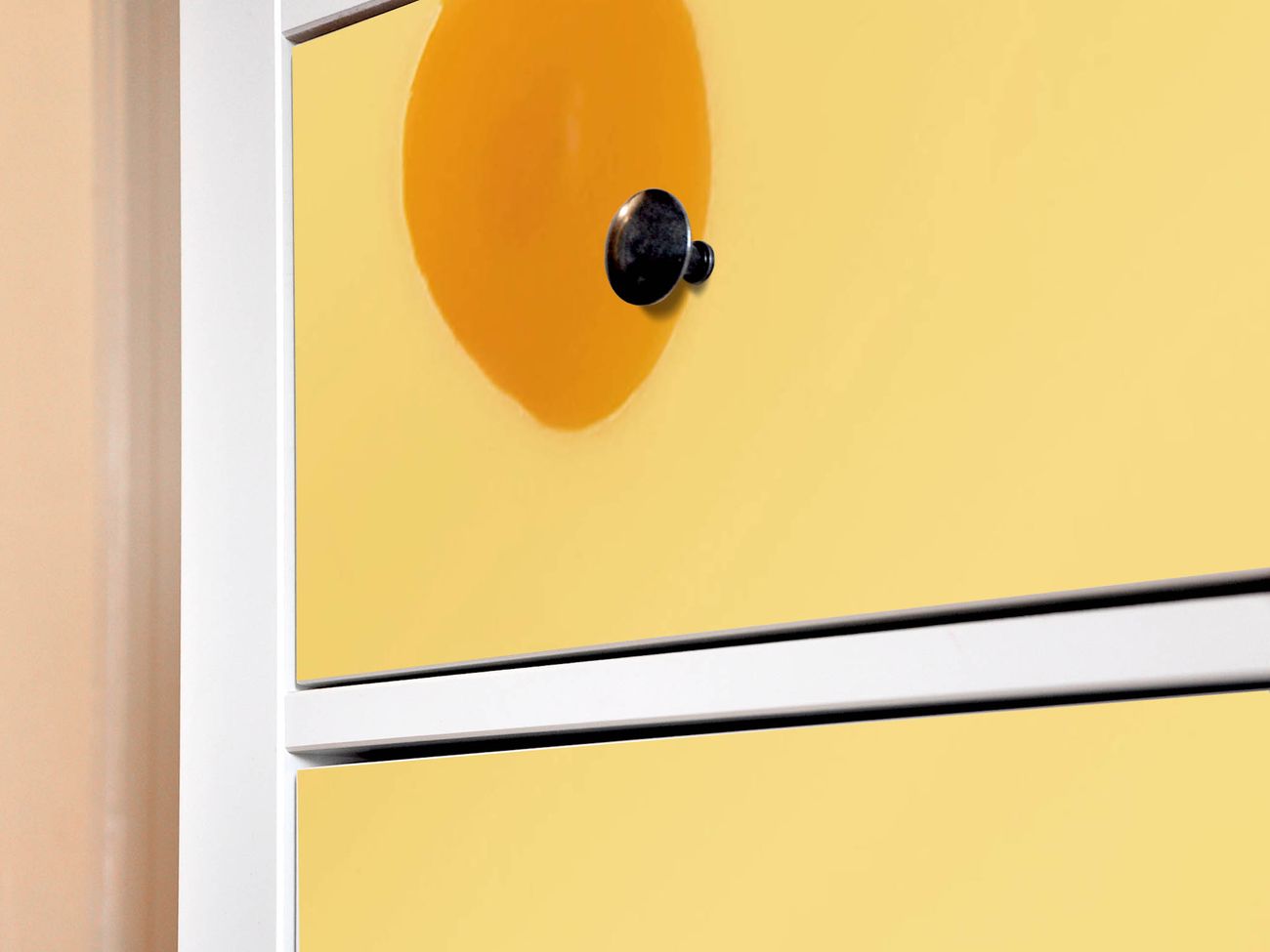 FUNKTION: Die banjado Möbelfolie mit Motiv Käse zaubert im Handumdrehen aus Ihrer Ikea HEMNES Kommode ein individuell gestaltetes Unikat. Verziert mit einem traumhaften Motiv verbindet die HEMNES Kommode jede Menge Stauraum mit ansprechendem Design. Die gezeigte IKEA HEMNES Komode ist nicht im Angebot enthalten. DESIGN: Die banjado Klebefolie gestaltet Ihr Ikea Möbelstück völlig neu. So passt sich die HEMNESKommode verschiedenen Einrichtungsstilen an. Lassen Sie Ihrer Kreativität freien Raum, wir helfen Ihnen bei der Umsetzung. DETAILS: Der banjado Käse Möbelsticker ist selbstklebend und wird Ihnen bereits fertig zugeschnitten geliefert. Sie können Schritt für Schritt jede Schublade einzeln bekleben, eine detaillierte Verklebeanleitung liegt selbstverständlich bei. Die Folie ist mit einem zusätzlichen Laminat überzogen, dass Ihr Möbelstück zusätzlich vor Kratzern schützt. NUTZEN: Sie können die banjado Möbelfolie wunderbar nutzen, um abgeplatzte, schmutzige oder unschöne Stellen an Ihrer Malm Kommode zu überdecken. Mit einem wechselnden Design können Sie Ihren Einrichtungsstil ändern oder aus einer Kinderkommode eine Flurkommode gestalten. Alle verwendeten Farben sind lösungsmittelfrei. BANJADO: Ihre Design Folie wird in Sachsen in einer kleinen Manufaktur angefertigt und verpackt. Wir legen großen Wert auf die Verbindung von Funktionalität und Design.