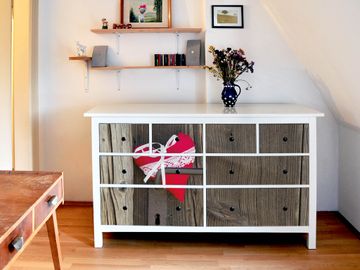 FUNKTION: Die banjado Möbelfolie mit Motiv Knock On Your Door zaubert im Handumdrehen aus Ihrer Ikea HEMNES Kommode ein individuell gestaltetes Unikat. Verziert mit einem traumhaften Motiv verbindet die HEMNES Kommode jede Menge Stauraum mit ansprechendem Design. Die gezeigte IKEA HEMNES Komode ist nicht im Angebot enthalten. DESIGN: Die banjado Klebefolie gestaltet Ihr Ikea Möbelstück völlig neu. So passt sich die HEMNESKommode verschiedenen Einrichtungsstilen an. Lassen Sie Ihrer Kreativität freien Raum, wir helfen Ihnen bei der Umsetzung. DETAILS: Der banjado Knock On Your Door Möbelsticker ist selbstklebend und wird Ihnen bereits fertig zugeschnitten geliefert. Sie können Schritt für Schritt jede Schublade einzeln bekleben, eine detaillierte Verklebeanleitung liegt selbstverständlich bei. Die Folie ist mit einem zusätzlichen Laminat überzogen, dass Ihr Möbelstück zusätzlich vor Kratzern schützt. NUTZEN: Sie können die banjado Möbelfolie wunderbar nutzen, um abgeplatzte, schmutzige oder unschöne Stellen an Ihrer Malm Kommode zu überdecken. Mit einem wechselnden Design können Sie Ihren Einrichtungsstil ändern oder aus einer Kinderkommode eine Flurkommode gestalten. Alle verwendeten Farben sind lösungsmittelfrei. BANJADO: Ihre Design Folie wird in Sachsen in einer kleinen Manufaktur angefertigt und verpackt. Wir legen großen Wert auf die Verbindung von Funktionalität und Design.