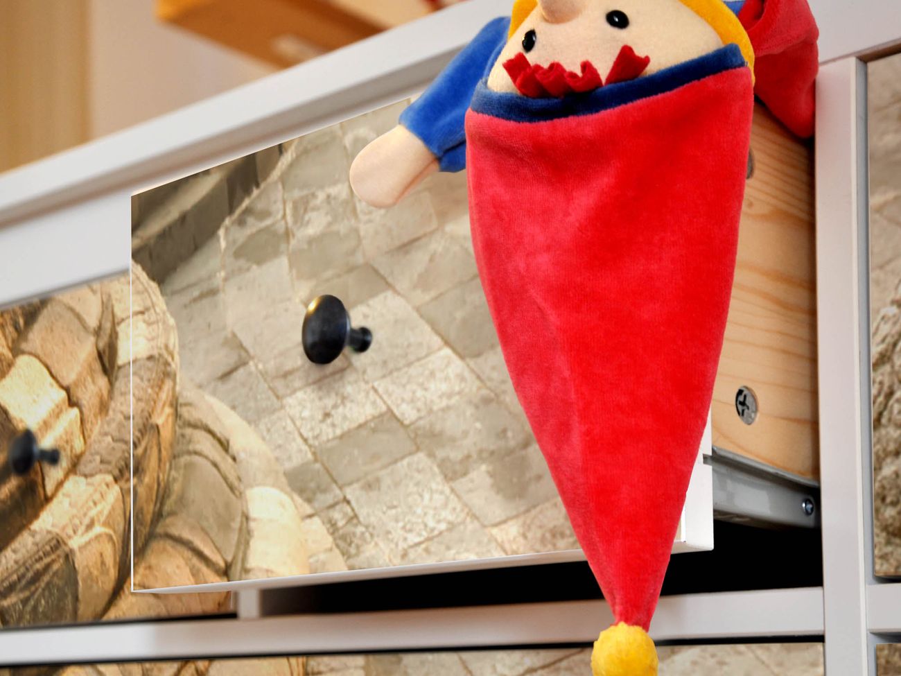 FUNKTION: Die banjado Möbelfolie mit Motiv Sitzender Buddha zaubert im Handumdrehen aus Ihrer Ikea HEMNES Kommode ein individuell gestaltetes Unikat. Verziert mit einem traumhaften Motiv verbindet die HEMNES Kommode jede Menge Stauraum mit ansprechendem Design. Die gezeigte IKEA HEMNES Komode ist nicht im Angebot enthalten. DESIGN: Die banjado Klebefolie gestaltet Ihr Ikea Möbelstück völlig neu. So passt sich die HEMNESKommode verschiedenen Einrichtungsstilen an. Lassen Sie Ihrer Kreativität freien Raum, wir helfen Ihnen bei der Umsetzung. DETAILS: Der banjado Sitzender Buddha Möbelsticker ist selbstklebend und wird Ihnen bereits fertig zugeschnitten geliefert. Sie können Schritt für Schritt jede Schublade einzeln bekleben, eine detaillierte Verklebeanleitung liegt selbstverständlich bei. Die Folie ist mit einem zusätzlichen Laminat überzogen, dass Ihr Möbelstück zusätzlich vor Kratzern schützt. NUTZEN: Sie können die banjado Möbelfolie wunderbar nutzen, um abgeplatzte, schmutzige oder unschöne Stellen an Ihrer Malm Kommode zu überdecken. Mit einem wechselnden Design können Sie Ihren Einrichtungsstil ändern oder aus einer Kinderkommode eine Flurkommode gestalten. Alle verwendeten Farben sind lösungsmittelfrei. BANJADO: Ihre Design Folie wird in Sachsen in einer kleinen Manufaktur angefertigt und verpackt. Wir legen großen Wert auf die Verbindung von Funktionalität und Design.