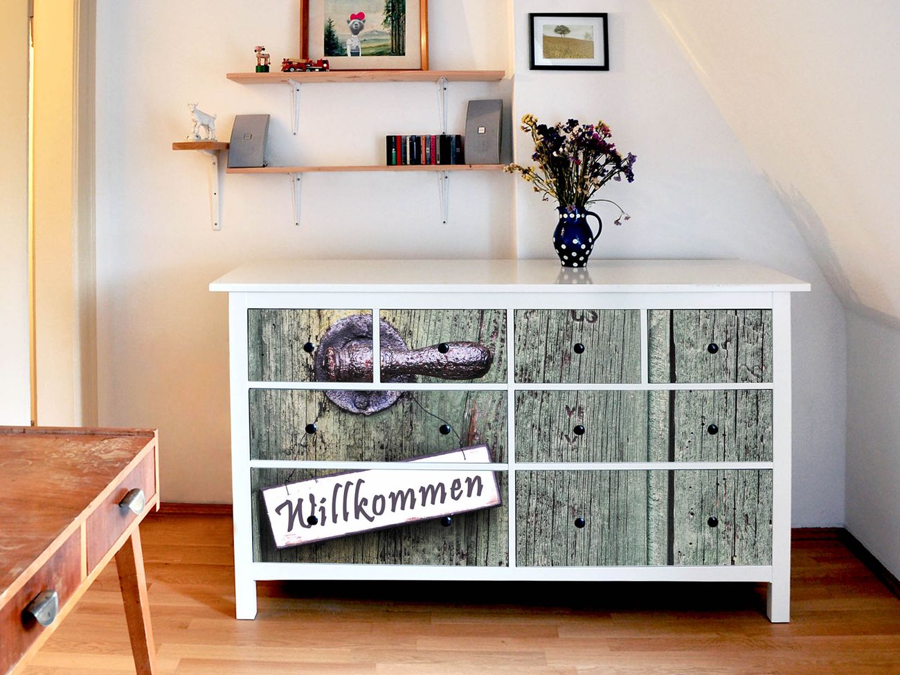 Möbelsticker für Ikea HEMNES Motiv Willkommen