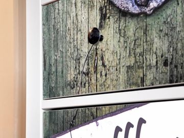 FUNKTION: Die banjado Möbelfolie mit Motiv Willkommen zaubert im Handumdrehen aus Ihrer Ikea HEMNES Kommode ein individuell gestaltetes Unikat. Verziert mit einem traumhaften Motiv verbindet die HEMNES Kommode jede Menge Stauraum mit ansprechendem Design. Die gezeigte IKEA HEMNES Komode ist nicht im Angebot enthalten. DESIGN: Die banjado Klebefolie gestaltet Ihr Ikea Möbelstück völlig neu. So passt sich die HEMNESKommode verschiedenen Einrichtungsstilen an. Lassen Sie Ihrer Kreativität freien Raum, wir helfen Ihnen bei der Umsetzung. DETAILS: Der banjado Willkommen Möbelsticker ist selbstklebend und wird Ihnen bereits fertig zugeschnitten geliefert. Sie können Schritt für Schritt jede Schublade einzeln bekleben, eine detaillierte Verklebeanleitung liegt selbstverständlich bei. Die Folie ist mit einem zusätzlichen Laminat überzogen, dass Ihr Möbelstück zusätzlich vor Kratzern schützt. NUTZEN: Sie können die banjado Möbelfolie wunderbar nutzen, um abgeplatzte, schmutzige oder unschöne Stellen an Ihrer Malm Kommode zu überdecken. Mit einem wechselnden Design können Sie Ihren Einrichtungsstil ändern oder aus einer Kinderkommode eine Flurkommode gestalten. Alle verwendeten Farben sind lösungsmittelfrei. BANJADO: Ihre Design Folie wird in Sachsen in einer kleinen Manufaktur angefertigt und verpackt. Wir legen großen Wert auf die Verbindung von Funktionalität und Design.