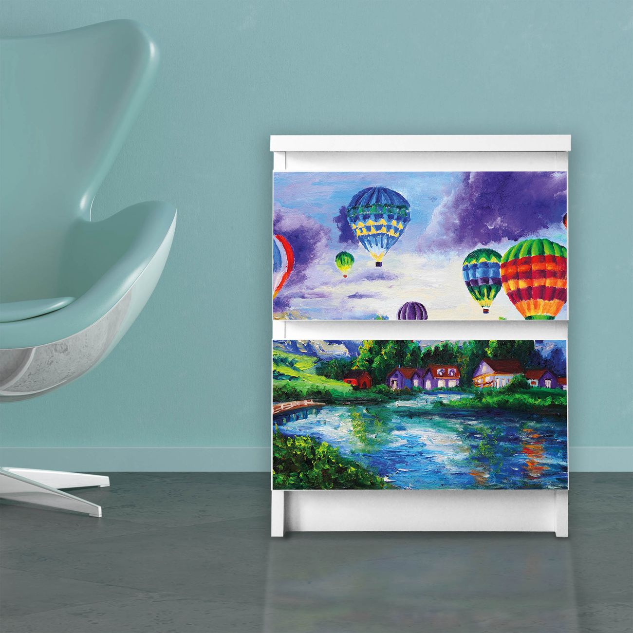 Möbelsticker für Ikea MALM Motiv Ballons In Lila Wolken