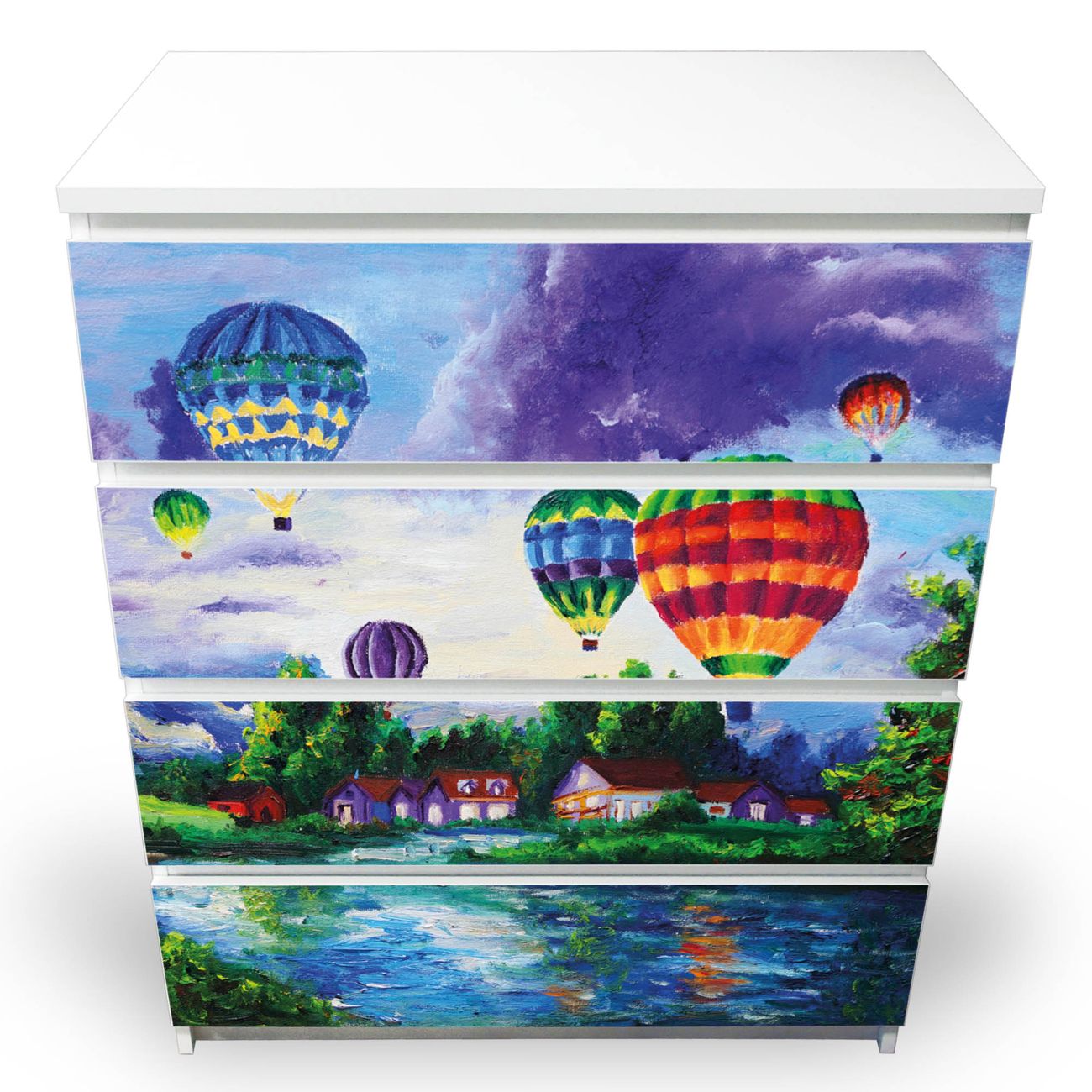 Möbelsticker für Ikea MALM Motiv Ballons In Lila Wolken