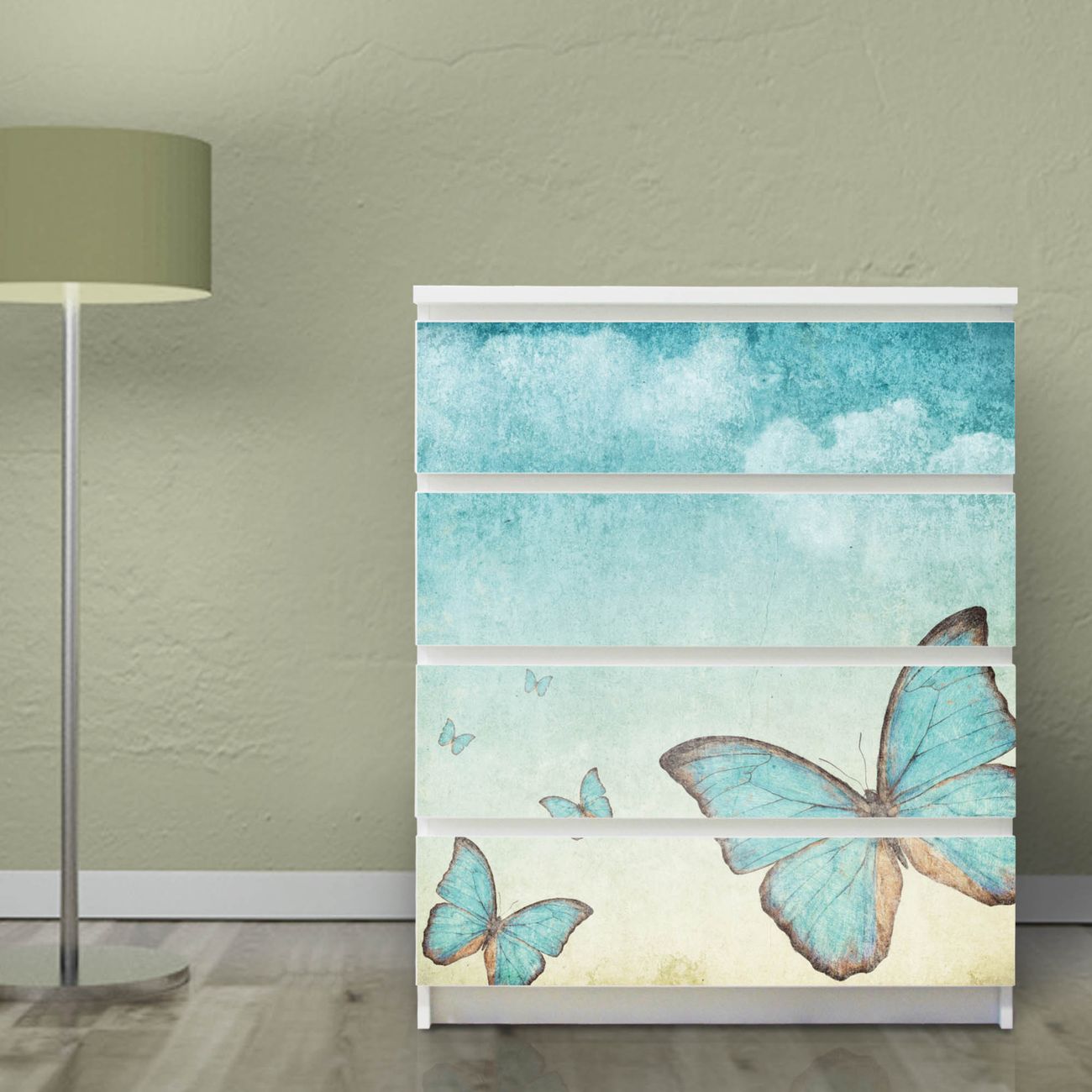Möbelsticker für Ikea MALM Motiv Blaue Schmetterlinge