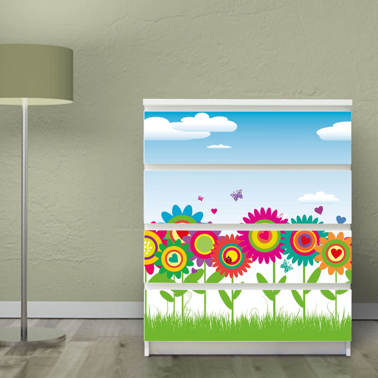 Möbelsticker für Ikea MALM Motiv Bunte Blumen