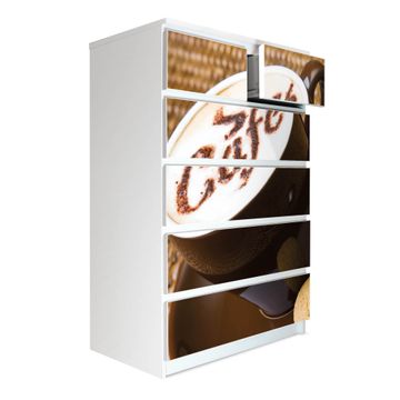 FUNKTION: Die banjado Möbelfolie mit Motiv Motiv Cafe zaubert im Handumdrehen aus Ihrer Ikea MALM Kommode ein individuell gestaltetes Unikat. Verziert mit einem traumhaften Motiv verbindet die Malm Kommode jede Menge Stauraum mit ansprechendem Design. Die gezeigte IKEA Malm Komode ist nicht im Angebot enthalten. DESIGN: Die banjado Klebefolie gestaltet Ihr Ikea Möbelstück völlig neu. So passt sich die Malm Kommode verschiedenen Einrichtungsstilen an. Lassen Sie Ihrer Kreativität freien Raum, wir helfen Ihnen bei der Umsetzung. Egal ob 2, 3, 4 oder 6 Schubkästen, wählen Sie einfach Ihre passende Variante. DETAILS: Der banjado Motiv Cafe Möbelsticker ist selbstklebend und wird Ihnen bereits fertig zugeschnitten geliefert. Sie können Schritt für Schritt jede Schublade einzeln bekleben, eine detaillierte Verklebeanleitung liegt selbstverständlich bei. Die Folie ist mit einem zusätzlichen Laminat überzogen, dass Ihr Möbelstück zusätzlich vor Kratzern schützt. NUTZEN: Sie können die banjado Möbelfolie wunderbar nutzen, um abgeplatzte, schmutzige oder unschöne Stellen an Ihrer Malm Kommode zu überdecken. Mit einem wechselnden Design können Sie Ihren Einrichtungsstil ändern oder aus einer Flurkommode eine Kinderkommode gestalten. Alle verwendeten Farben sind lösungsmittelfrei. BANJADO: Ihre Design Folie wird in Sachsen in einer kleinen Manufaktur angefertigt und verpackt. Wir legen großen Wert auf die Verbindung von Funktionalität und Design.