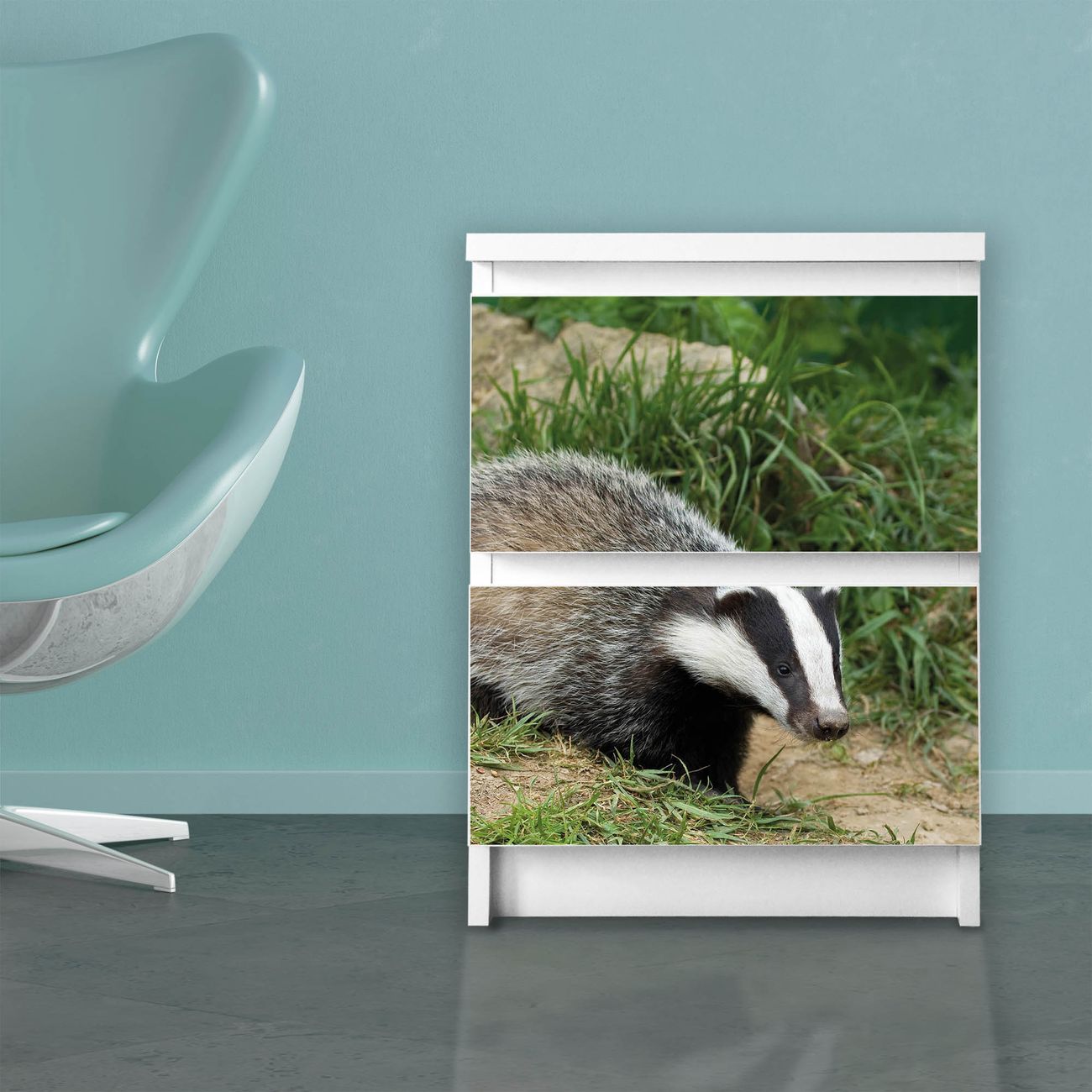 FUNKTION: Die banjado Möbelfolie mit Motiv Motiv Dachs zaubert im Handumdrehen aus Ihrer Ikea MALM Kommode ein individuell gestaltetes Unikat. Verziert mit einem traumhaften Motiv verbindet die Malm Kommode jede Menge Stauraum mit ansprechendem Design. Die gezeigte IKEA Malm Komode ist nicht im Angebot enthalten. DESIGN: Die banjado Klebefolie gestaltet Ihr Ikea Möbelstück völlig neu. So passt sich die Malm Kommode verschiedenen Einrichtungsstilen an. Lassen Sie Ihrer Kreativität freien Raum, wir helfen Ihnen bei der Umsetzung. Egal ob 2, 3, 4 oder 6 Schubkästen, wählen Sie einfach Ihre passende Variante. DETAILS: Der banjado Motiv Dachs Möbelsticker ist selbstklebend und wird Ihnen bereits fertig zugeschnitten geliefert. Sie können Schritt für Schritt jede Schublade einzeln bekleben, eine detaillierte Verklebeanleitung liegt selbstverständlich bei. Die Folie ist mit einem zusätzlichen Laminat überzogen, dass Ihr Möbelstück zusätzlich vor Kratzern schützt. NUTZEN: Sie können die banjado Möbelfolie wunderbar nutzen, um abgeplatzte, schmutzige oder unschöne Stellen an Ihrer Malm Kommode zu überdecken. Mit einem wechselnden Design können Sie Ihren Einrichtungsstil ändern oder aus einer Flurkommode eine Kinderkommode gestalten. Alle verwendeten Farben sind lösungsmittelfrei. BANJADO: Ihre Design Folie wird in Sachsen in einer kleinen Manufaktur angefertigt und verpackt. Wir legen großen Wert auf die Verbindung von Funktionalität und Design.