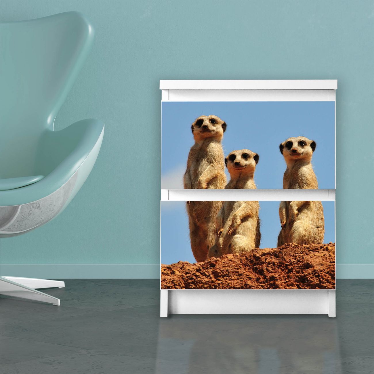 Möbelsticker für Ikea MALM Motiv Erdmännchenfamilie