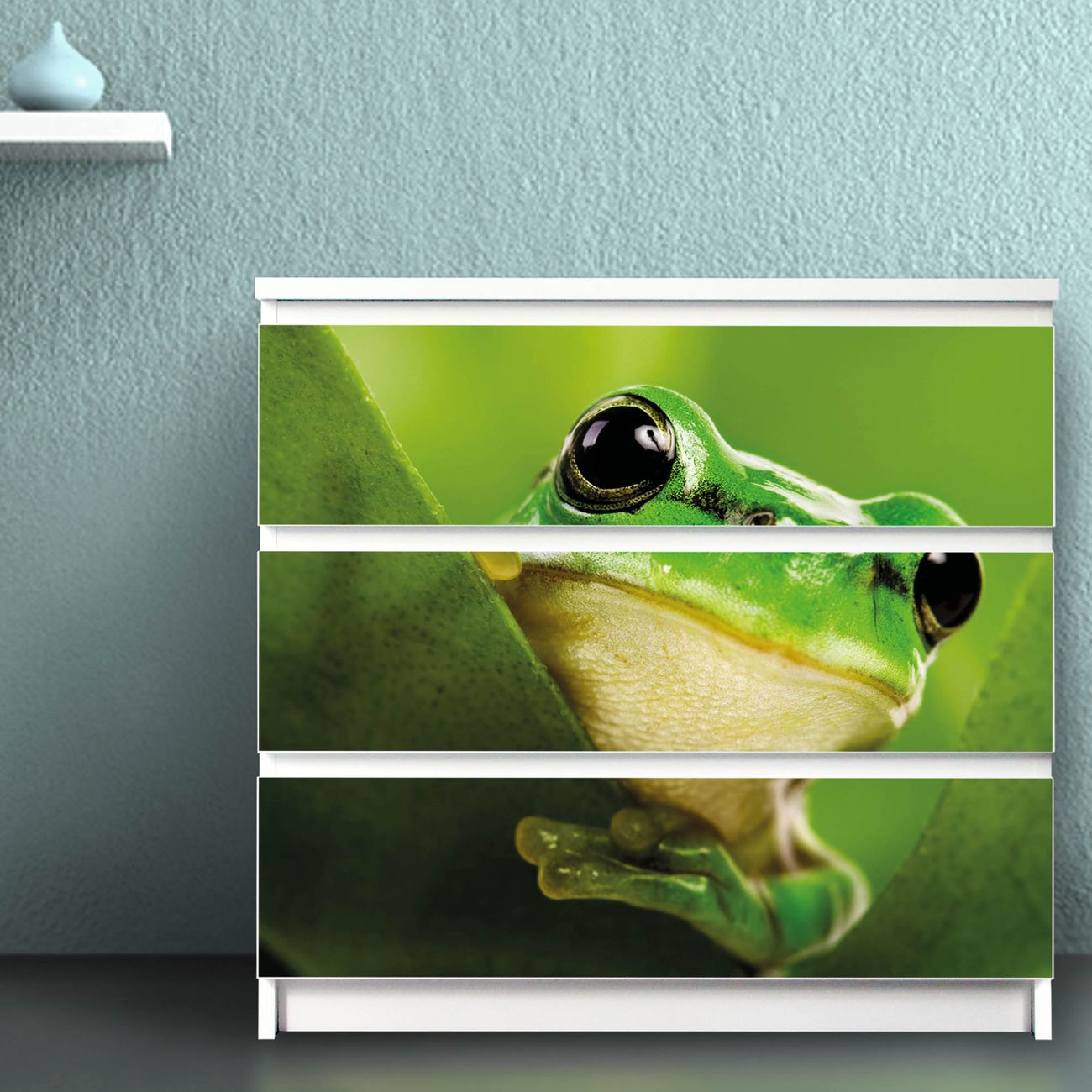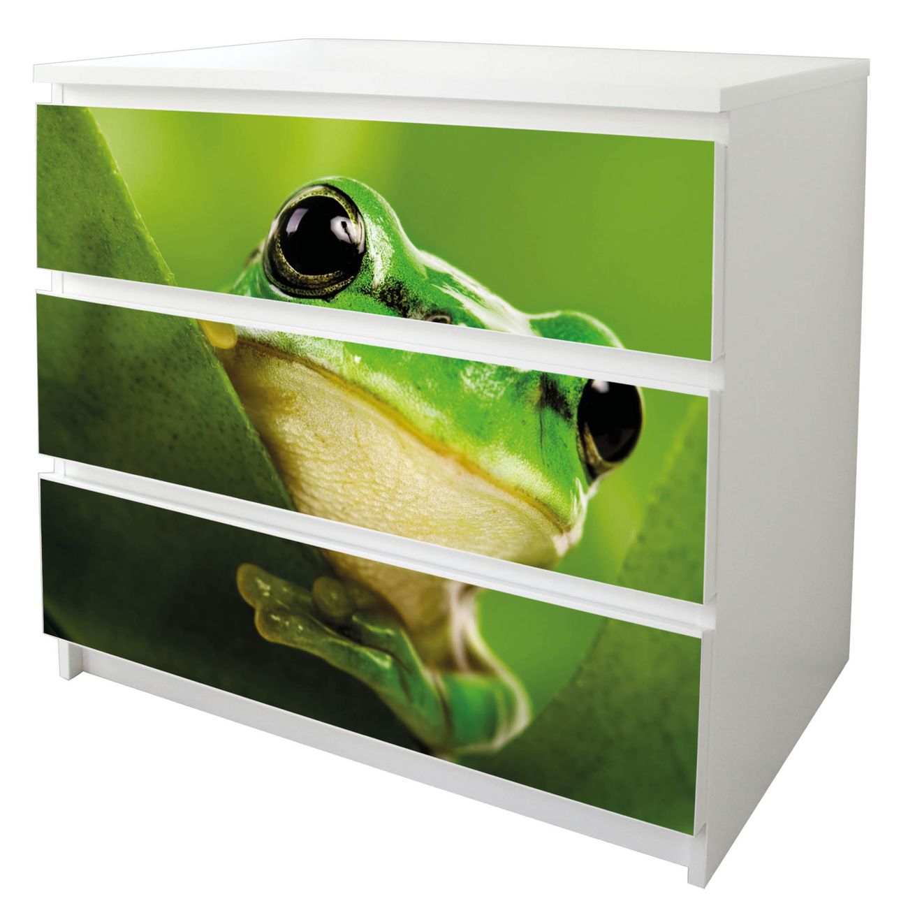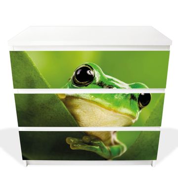 FUNKTION: Die banjado Möbelfolie mit Motiv Motiv Frosch zaubert im Handumdrehen aus Ihrer Ikea MALM Kommode ein individuell gestaltetes Unikat. Verziert mit einem traumhaften Motiv verbindet die Malm Kommode jede Menge Stauraum mit ansprechendem Design. Die gezeigte IKEA Malm Komode ist nicht im Angebot enthalten. DESIGN: Die banjado Klebefolie gestaltet Ihr Ikea Möbelstück völlig neu. So passt sich die Malm Kommode verschiedenen Einrichtungsstilen an. Lassen Sie Ihrer Kreativität freien Raum, wir helfen Ihnen bei der Umsetzung. Egal ob 2, 3, 4 oder 6 Schubkästen, wählen Sie einfach Ihre passende Variante. DETAILS: Der banjado Motiv Frosch Möbelsticker ist selbstklebend und wird Ihnen bereits fertig zugeschnitten geliefert. Sie können Schritt für Schritt jede Schublade einzeln bekleben, eine detaillierte Verklebeanleitung liegt selbstverständlich bei. Die Folie ist mit einem zusätzlichen Laminat überzogen, dass Ihr Möbelstück zusätzlich vor Kratzern schützt. NUTZEN: Sie können die banjado Möbelfolie wunderbar nutzen, um abgeplatzte, schmutzige oder unschöne Stellen an Ihrer Malm Kommode zu überdecken. Mit einem wechselnden Design können Sie Ihren Einrichtungsstil ändern oder aus einer Flurkommode eine Kinderkommode gestalten. Alle verwendeten Farben sind lösungsmittelfrei. BANJADO: Ihre Design Folie wird in Sachsen in einer kleinen Manufaktur angefertigt und verpackt. Wir legen großen Wert auf die Verbindung von Funktionalität und Design.
