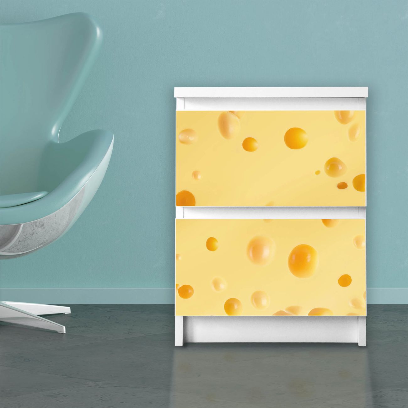 FUNKTION: Die banjado Möbelfolie mit Motiv Motiv Käse zaubert im Handumdrehen aus Ihrer Ikea MALM Kommode ein individuell gestaltetes Unikat. Verziert mit einem traumhaften Motiv verbindet die Malm Kommode jede Menge Stauraum mit ansprechendem Design. Die gezeigte IKEA Malm Komode ist nicht im Angebot enthalten. DESIGN: Die banjado Klebefolie gestaltet Ihr Ikea Möbelstück völlig neu. So passt sich die Malm Kommode verschiedenen Einrichtungsstilen an. Lassen Sie Ihrer Kreativität freien Raum, wir helfen Ihnen bei der Umsetzung. Egal ob 2, 3, 4 oder 6 Schubkästen, wählen Sie einfach Ihre passende Variante. DETAILS: Der banjado Motiv Käse Möbelsticker ist selbstklebend und wird Ihnen bereits fertig zugeschnitten geliefert. Sie können Schritt für Schritt jede Schublade einzeln bekleben, eine detaillierte Verklebeanleitung liegt selbstverständlich bei. Die Folie ist mit einem zusätzlichen Laminat überzogen, dass Ihr Möbelstück zusätzlich vor Kratzern schützt. NUTZEN: Sie können die banjado Möbelfolie wunderbar nutzen, um abgeplatzte, schmutzige oder unschöne Stellen an Ihrer Malm Kommode zu überdecken. Mit einem wechselnden Design können Sie Ihren Einrichtungsstil ändern oder aus einer Flurkommode eine Kinderkommode gestalten. Alle verwendeten Farben sind lösungsmittelfrei. BANJADO: Ihre Design Folie wird in Sachsen in einer kleinen Manufaktur angefertigt und verpackt. Wir legen großen Wert auf die Verbindung von Funktionalität und Design.