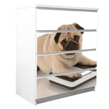FUNKTION: Die banjado Möbelfolie mit Motiv Motiv Mops zaubert im Handumdrehen aus Ihrer Ikea MALM Kommode ein individuell gestaltetes Unikat. Verziert mit einem traumhaften Motiv verbindet die Malm Kommode jede Menge Stauraum mit ansprechendem Design. Die gezeigte IKEA Malm Komode ist nicht im Angebot enthalten. DESIGN: Die banjado Klebefolie gestaltet Ihr Ikea Möbelstück völlig neu. So passt sich die Malm Kommode verschiedenen Einrichtungsstilen an. Lassen Sie Ihrer Kreativität freien Raum, wir helfen Ihnen bei der Umsetzung. Egal ob 2, 3, 4 oder 6 Schubkästen, wählen Sie einfach Ihre passende Variante. DETAILS: Der banjado Motiv Mops Möbelsticker ist selbstklebend und wird Ihnen bereits fertig zugeschnitten geliefert. Sie können Schritt für Schritt jede Schublade einzeln bekleben, eine detaillierte Verklebeanleitung liegt selbstverständlich bei. Die Folie ist mit einem zusätzlichen Laminat überzogen, dass Ihr Möbelstück zusätzlich vor Kratzern schützt. NUTZEN: Sie können die banjado Möbelfolie wunderbar nutzen, um abgeplatzte, schmutzige oder unschöne Stellen an Ihrer Malm Kommode zu überdecken. Mit einem wechselnden Design können Sie Ihren Einrichtungsstil ändern oder aus einer Flurkommode eine Kinderkommode gestalten. Alle verwendeten Farben sind lösungsmittelfrei. BANJADO: Ihre Design Folie wird in Sachsen in einer kleinen Manufaktur angefertigt und verpackt. Wir legen großen Wert auf die Verbindung von Funktionalität und Design.