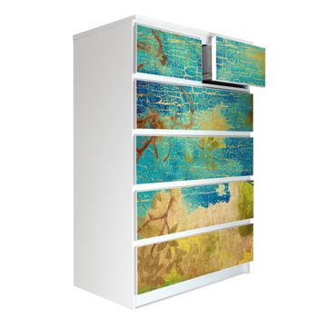 FUNKTION: Die banjado Möbelfolie mit Motiv Motiv Patina zaubert im Handumdrehen aus Ihrer Ikea MALM Kommode ein individuell gestaltetes Unikat. Verziert mit einem traumhaften Motiv verbindet die Malm Kommode jede Menge Stauraum mit ansprechendem Design. Die gezeigte IKEA Malm Komode ist nicht im Angebot enthalten. DESIGN: Die banjado Klebefolie gestaltet Ihr Ikea Möbelstück völlig neu. So passt sich die Malm Kommode verschiedenen Einrichtungsstilen an. Lassen Sie Ihrer Kreativität freien Raum, wir helfen Ihnen bei der Umsetzung. Egal ob 2, 3, 4 oder 6 Schubkästen, wählen Sie einfach Ihre passende Variante. DETAILS: Der banjado Motiv Patina Möbelsticker ist selbstklebend und wird Ihnen bereits fertig zugeschnitten geliefert. Sie können Schritt für Schritt jede Schublade einzeln bekleben, eine detaillierte Verklebeanleitung liegt selbstverständlich bei. Die Folie ist mit einem zusätzlichen Laminat überzogen, dass Ihr Möbelstück zusätzlich vor Kratzern schützt. NUTZEN: Sie können die banjado Möbelfolie wunderbar nutzen, um abgeplatzte, schmutzige oder unschöne Stellen an Ihrer Malm Kommode zu überdecken. Mit einem wechselnden Design können Sie Ihren Einrichtungsstil ändern oder aus einer Flurkommode eine Kinderkommode gestalten. Alle verwendeten Farben sind lösungsmittelfrei. BANJADO: Ihre Design Folie wird in Sachsen in einer kleinen Manufaktur angefertigt und verpackt. Wir legen großen Wert auf die Verbindung von Funktionalität und Design.