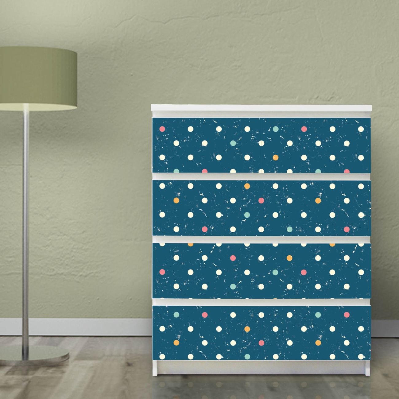 Möbelsticker für Ikea MALM Motiv Punkte auf Blau