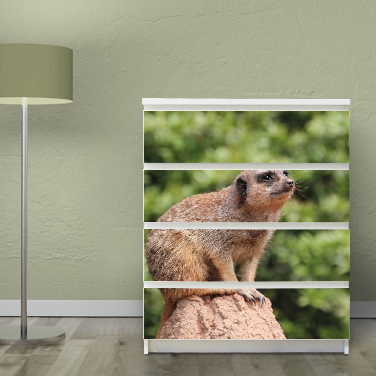 Möbelsticker für Ikea MALM Motiv Sitzendes Erdmännchen