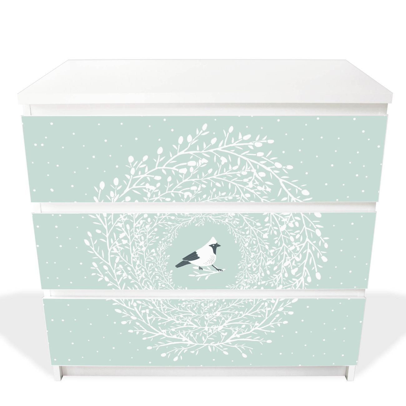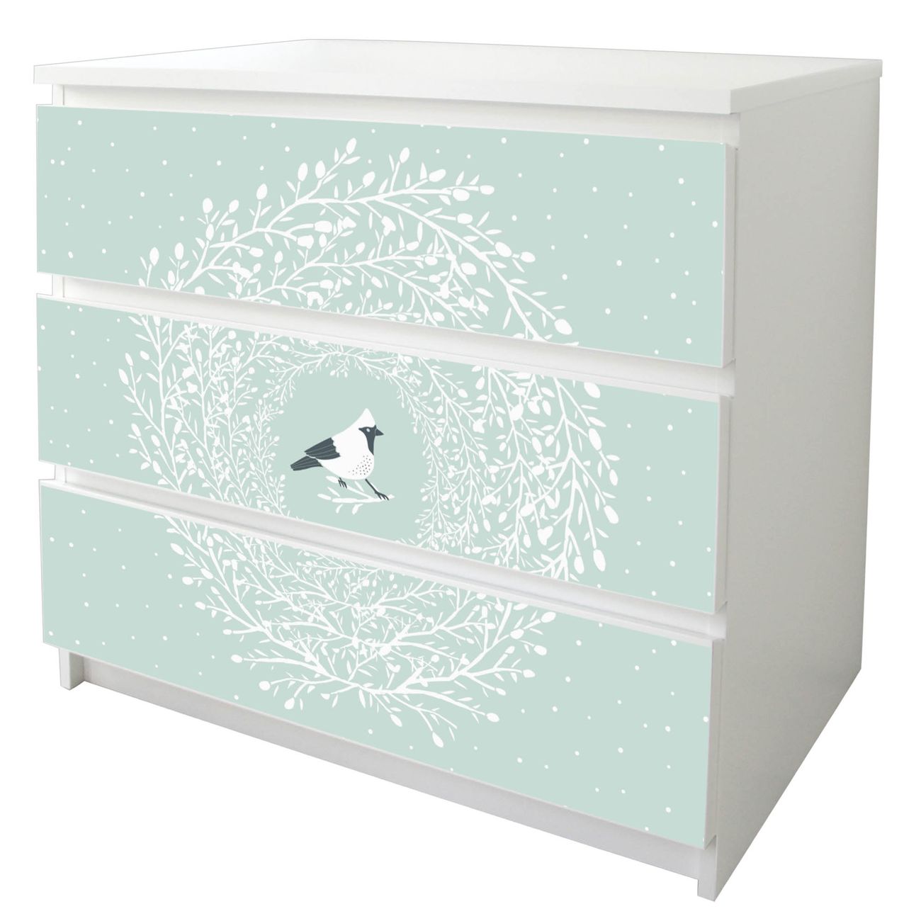 Möbelsticker für Ikea MALM Motiv Vogel im Kranz
