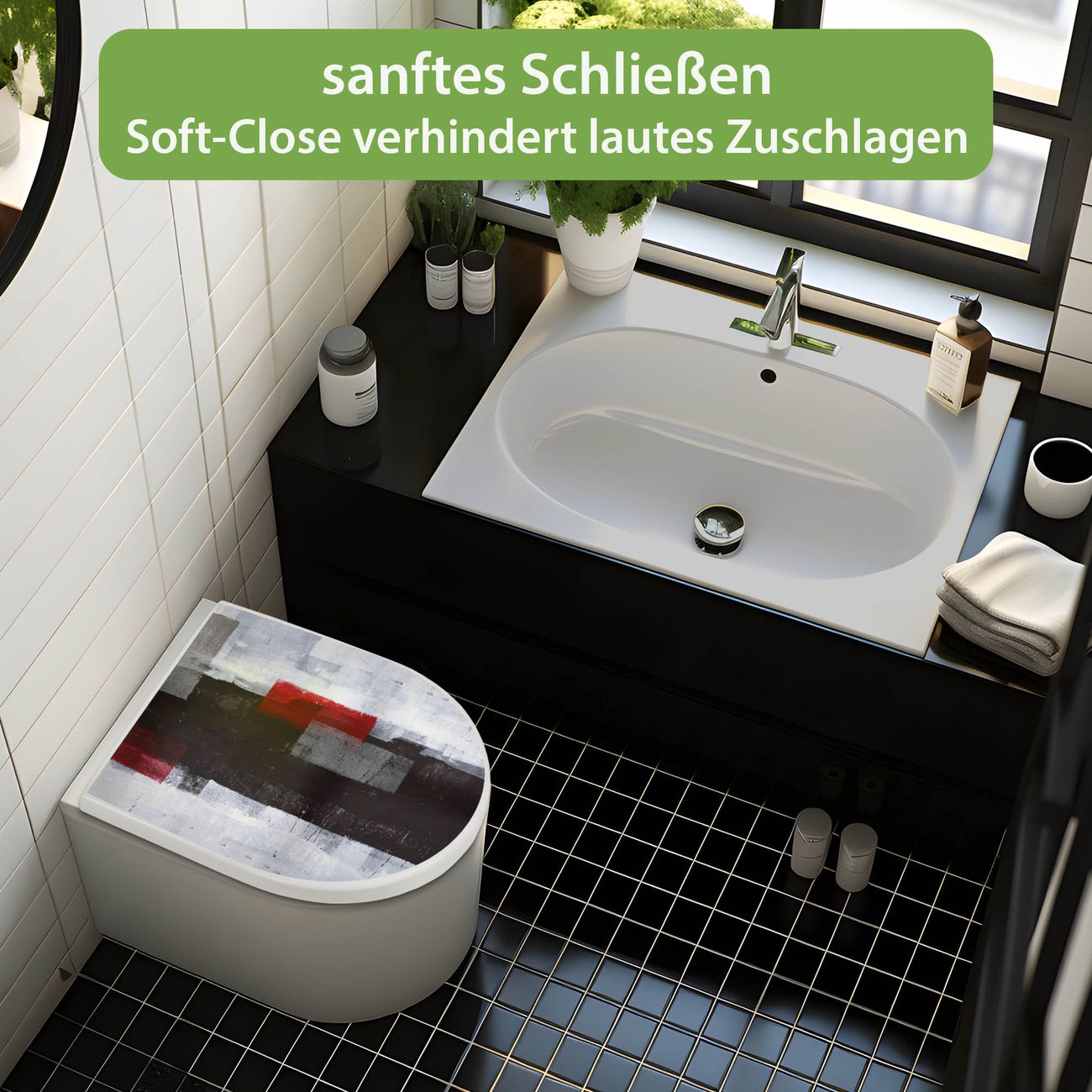 WC Sitz mit Absenkautomatik D Form Motiv Abstrakt Rot