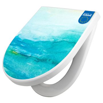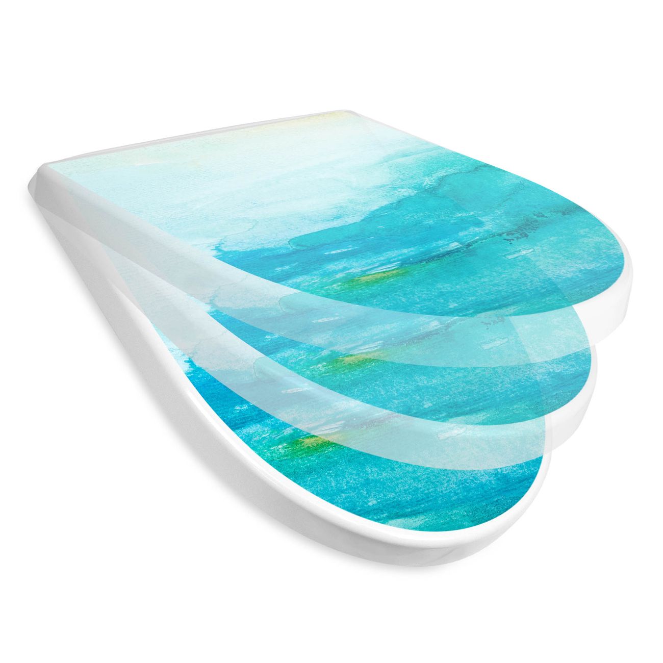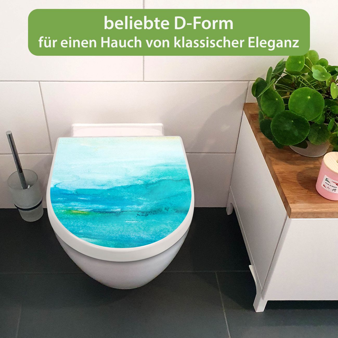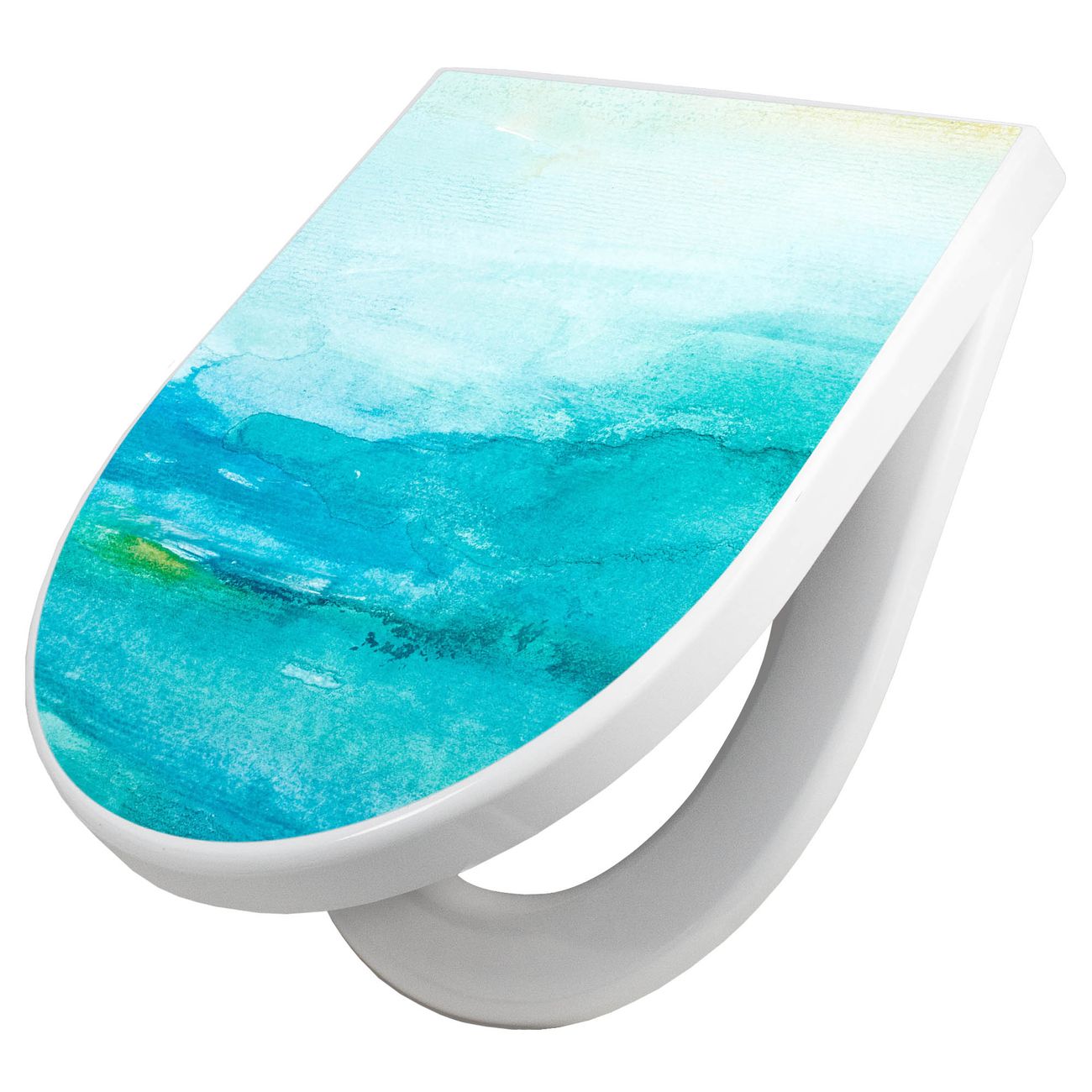 WC Sitz mit Absenkautomatik D Form Motiv Aquarell Blau
